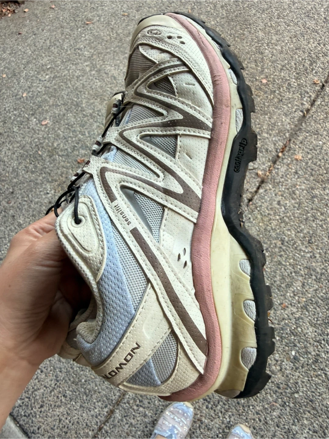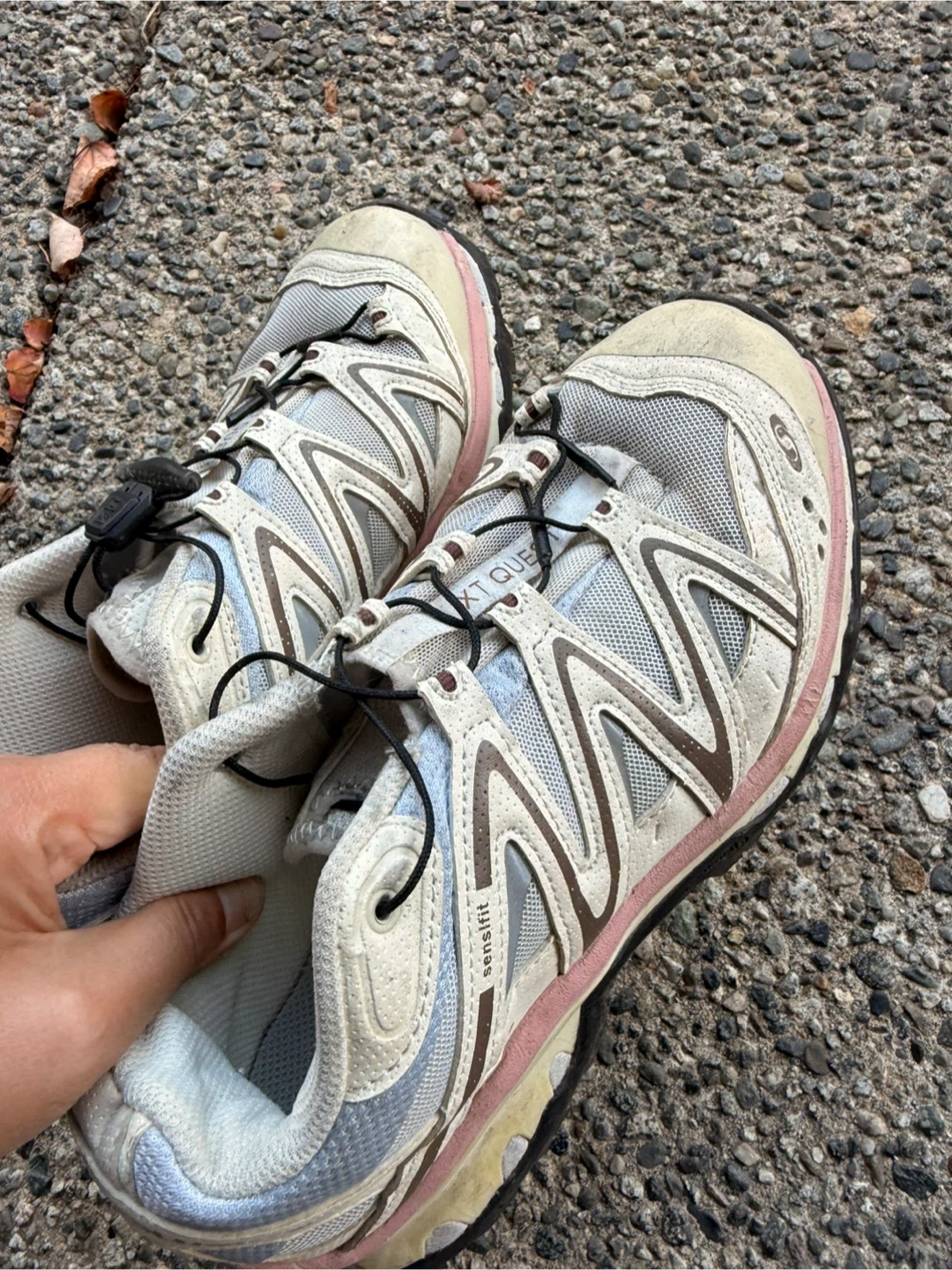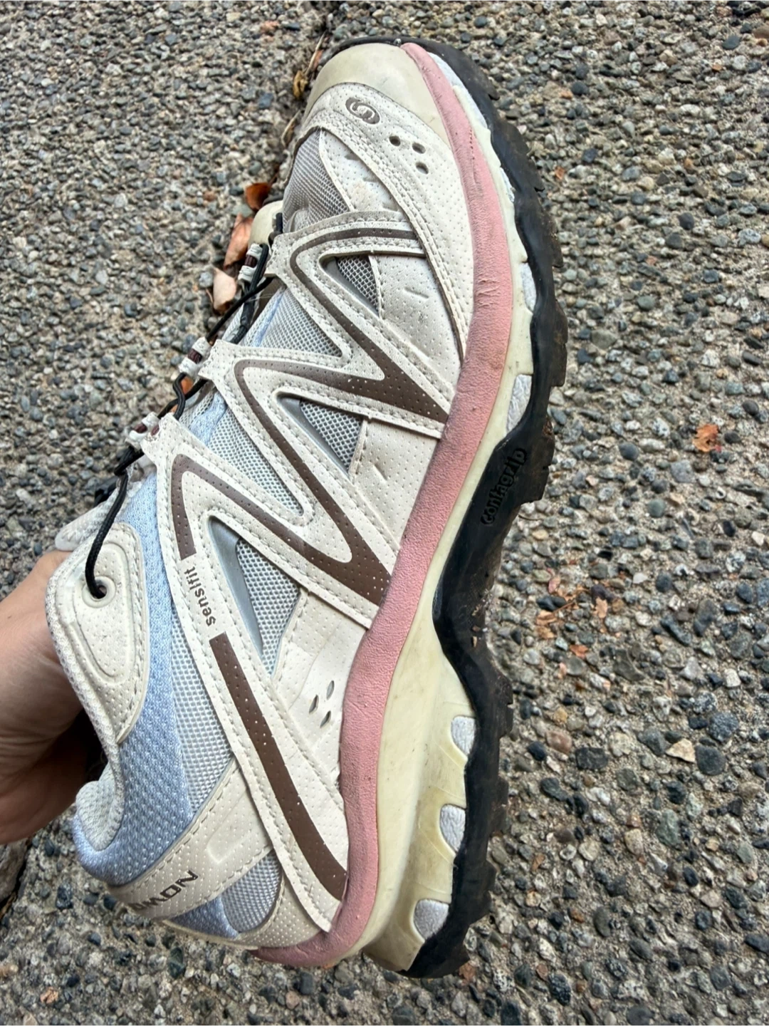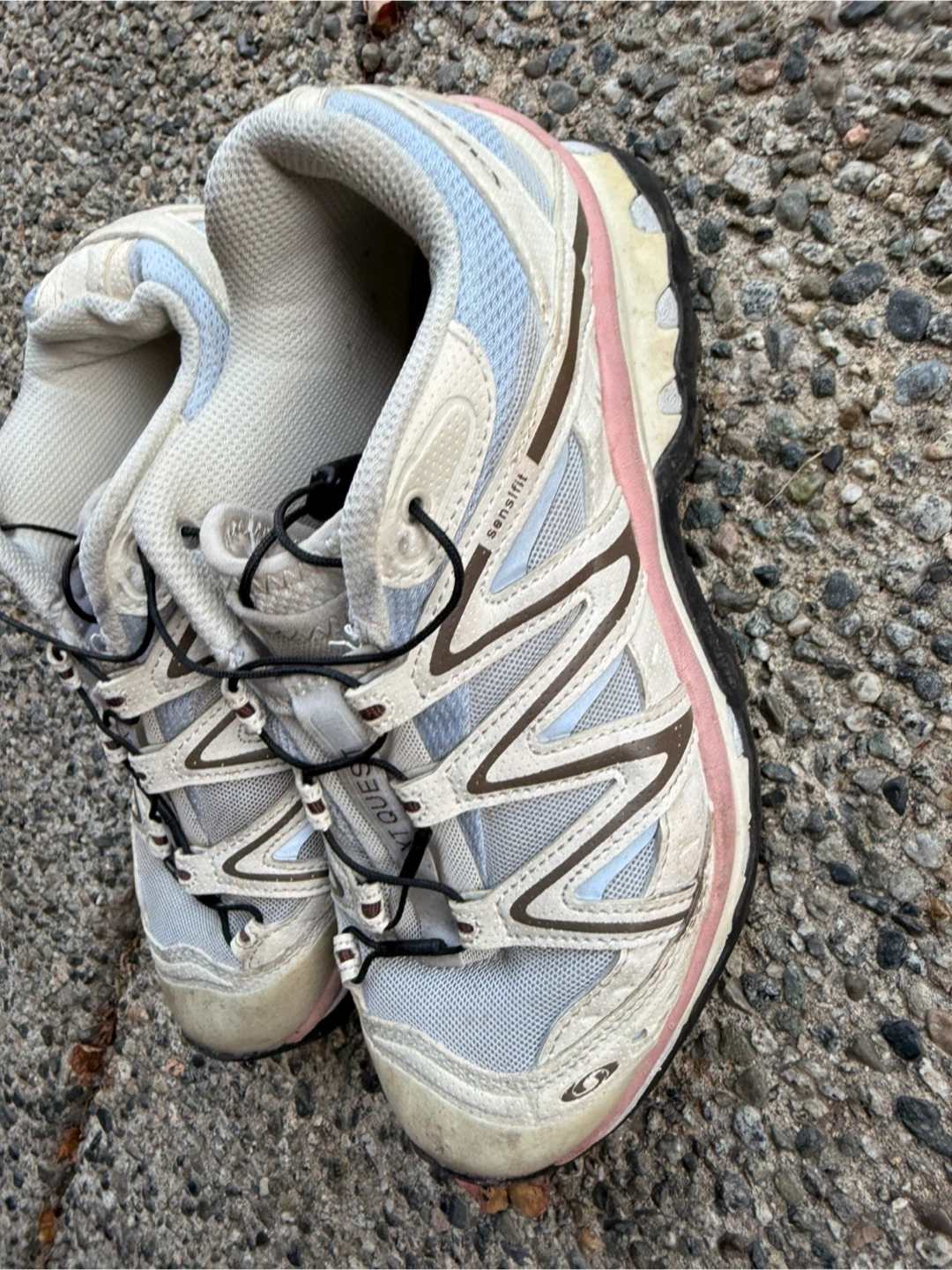 Selling a pair of Salomon XT Quest Sensifit trail running shoes. They show some signs of wear, but still have plenty of life left for hitting the trails. The Sensifit technology ensures a snug and comfortable fit, while the Contagrip outsole provides excellent traction on various surfaces. Great for outdoor adventures!