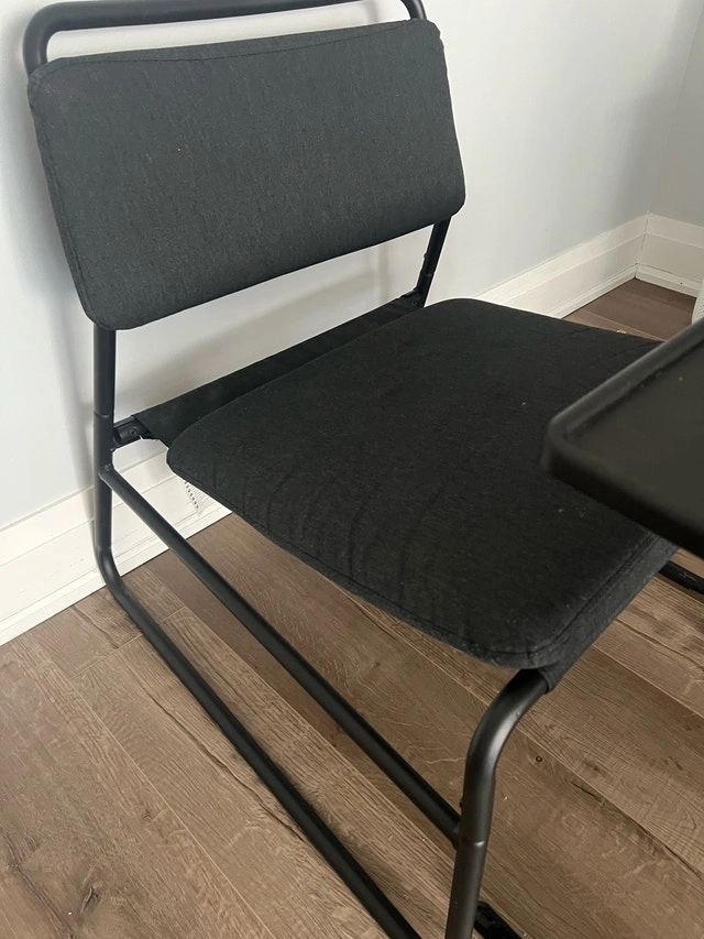 This is an Ikea Vilmar chair, perfect for adding a minimalist touch to your space. The chair features a sleek, black frame with a comfortable, padded seat and backrest. The chair is in used condition. Colour: Black. Style: Minimalist. If you're seeing this ad, the chair is still available.