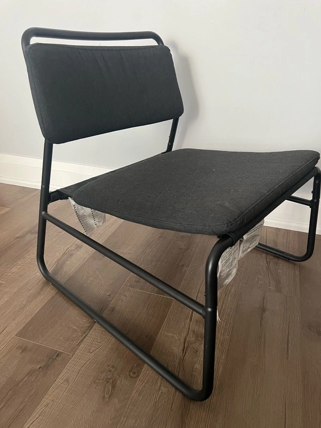 This is an Ikea Vilmar chair, perfect for adding a minimalist touch to your space. The chair features a sleek, black frame with a comfortable, padded seat and backrest. The chair is in used condition. Colour: Black. Style: Minimalist. If you're seeing this ad, the chair is still available.