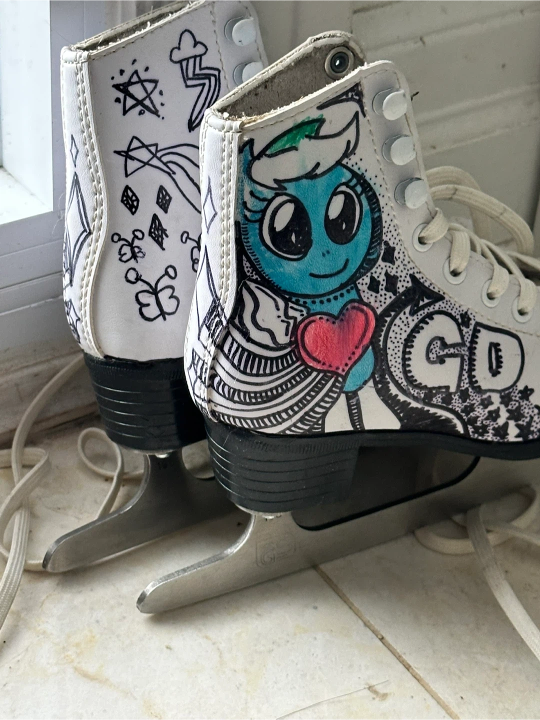 Girls White Figure Skates with Custom Drawings