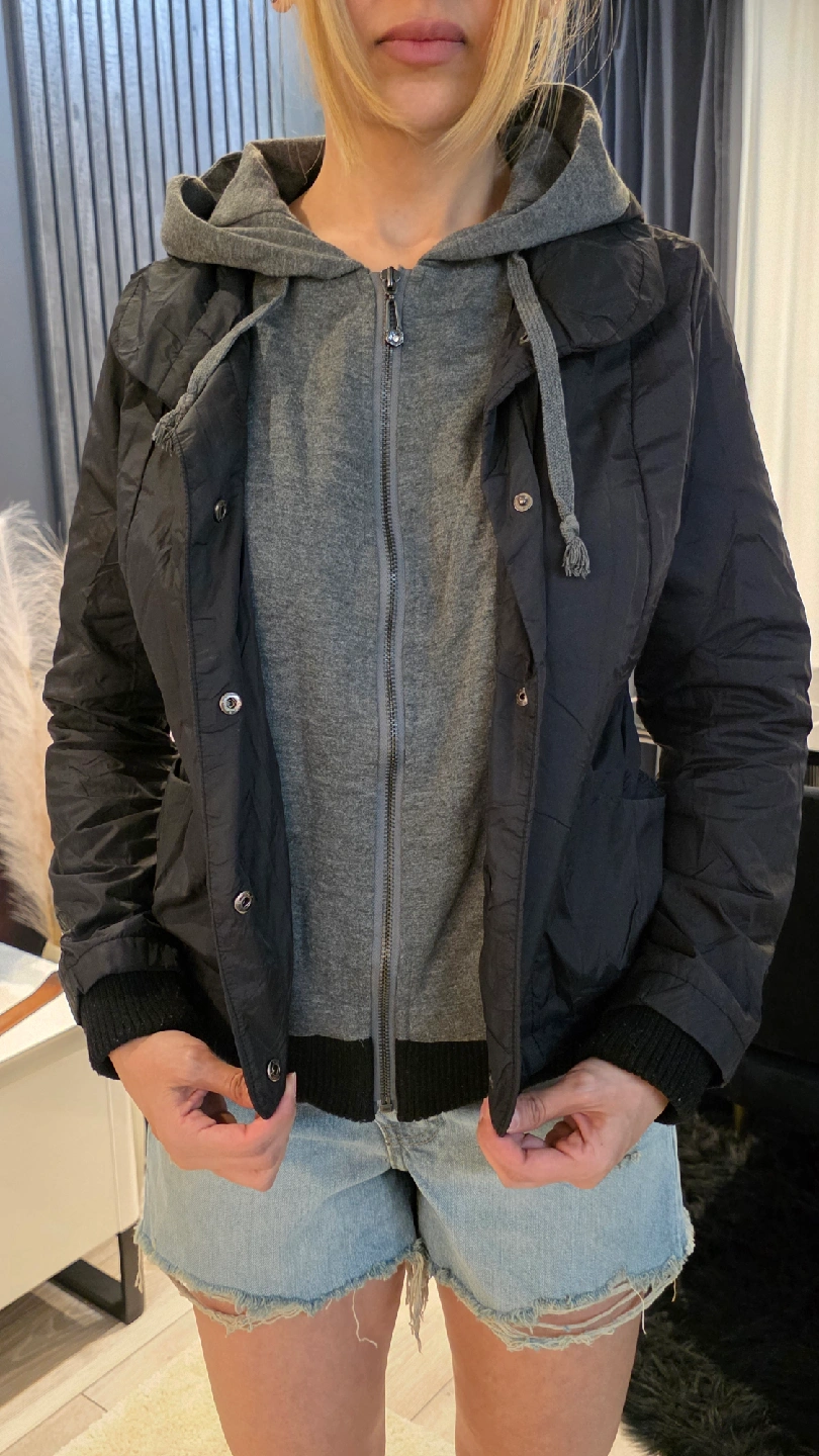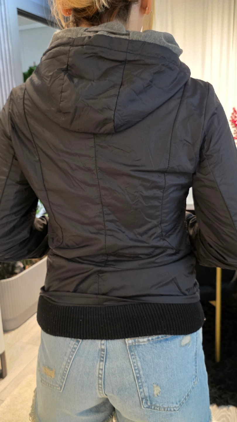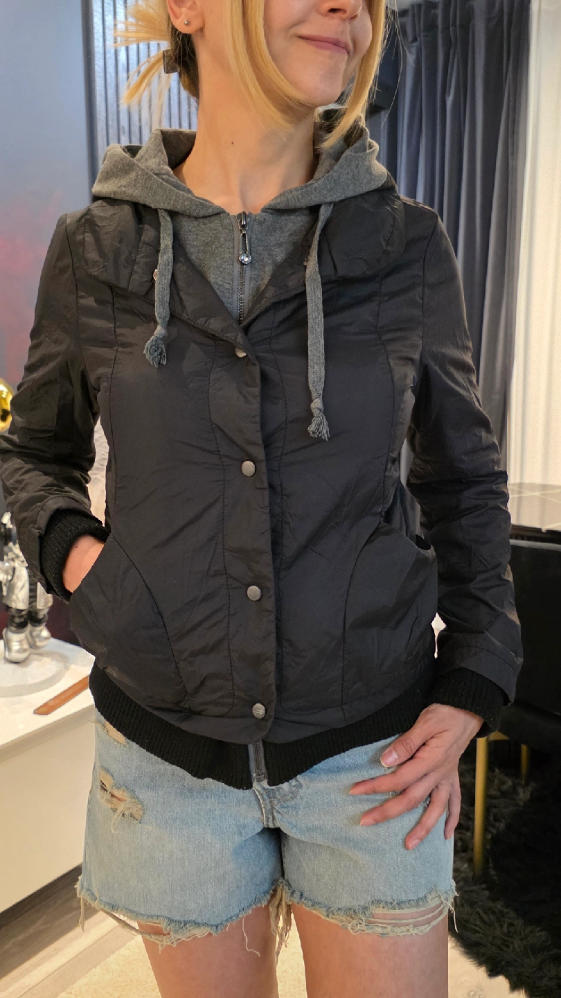 34Selling a gently used Cassmari black jacket with a hood. It's in great shape and perfect for layering! The jacket features a button-up front and two pockets.