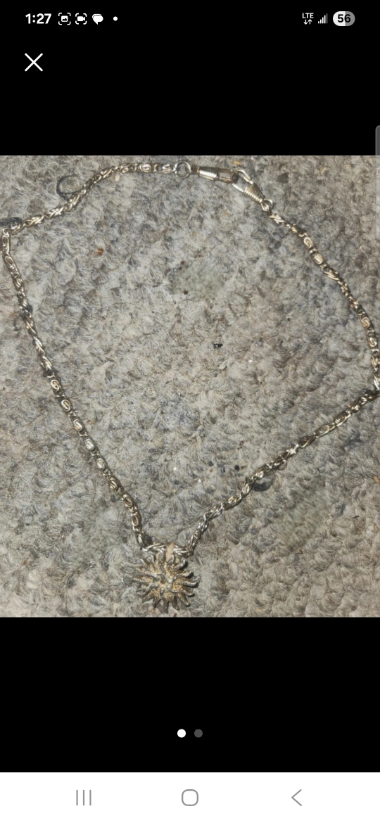 599Selling a mixed lot of vintage charms! There's a variety of styles and designs, including a leaf charm, a tassel charm, and an oval filigree charm. + An Amethyst. Perfect for adding a touch of retro charm to your outfits! +Selling two necklaces, 1 seems to be Copper, while the other maybe Stainless Steel with a Sun Charm. It's in good condition and ready for a new home. Pick up only.