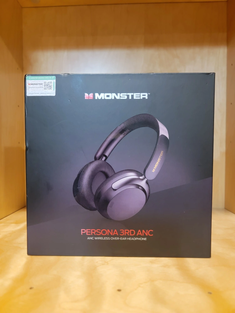 155Monster persona 3rd anc wireless headphones. Includes charging cable, headphones and manual in box.