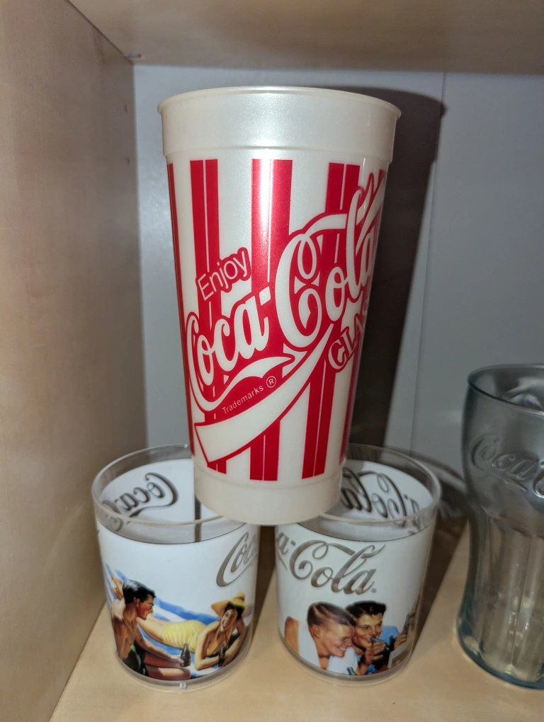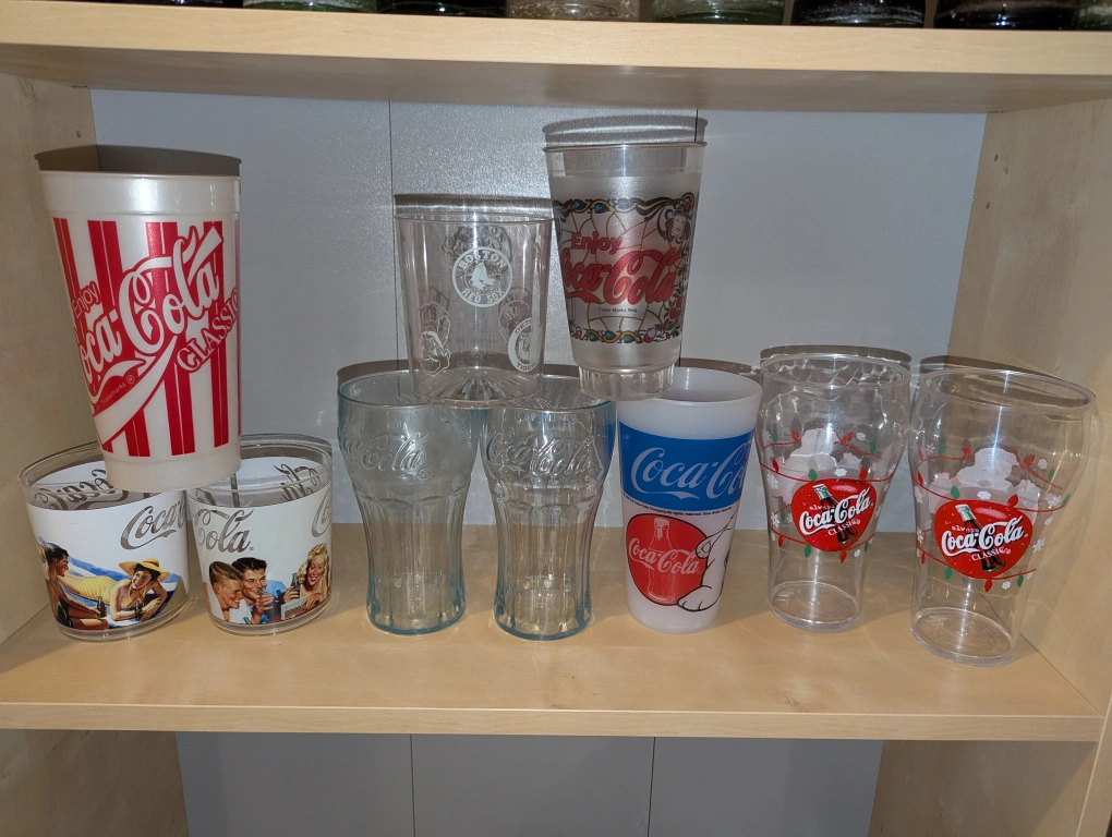 Selling a set of 10 Coca-Cola collectible glasses. There's a variety of designs from Coca-Cola Classic to special editions. Great for collectors or anyone who loves a bit of retro charm in their kitchen! Selling as a group.