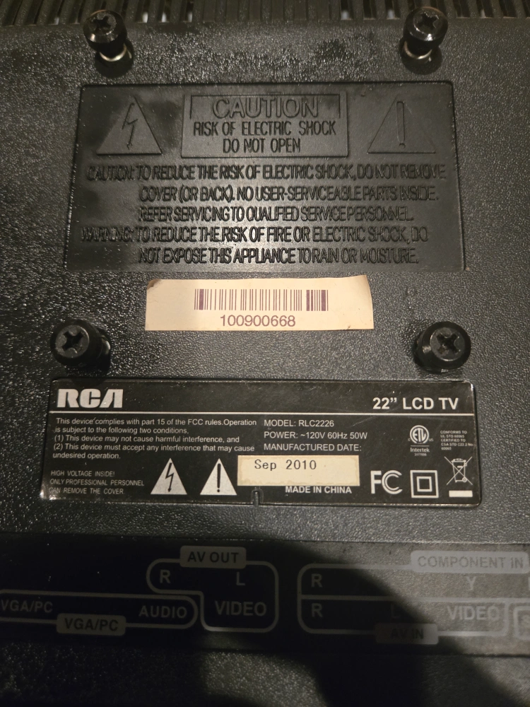 Selling an RCA 22" LCD TV, model RLC2226. It's in good working condition and would be perfect for a small space or as a secondary screen. Manufactured in Sep 2010.