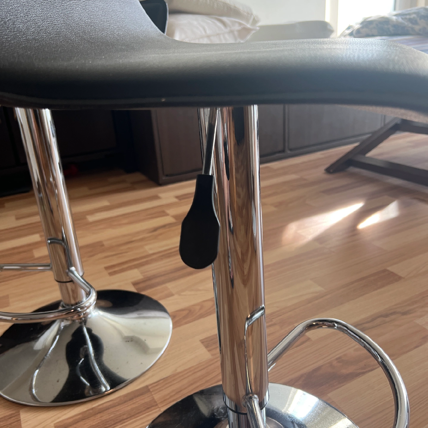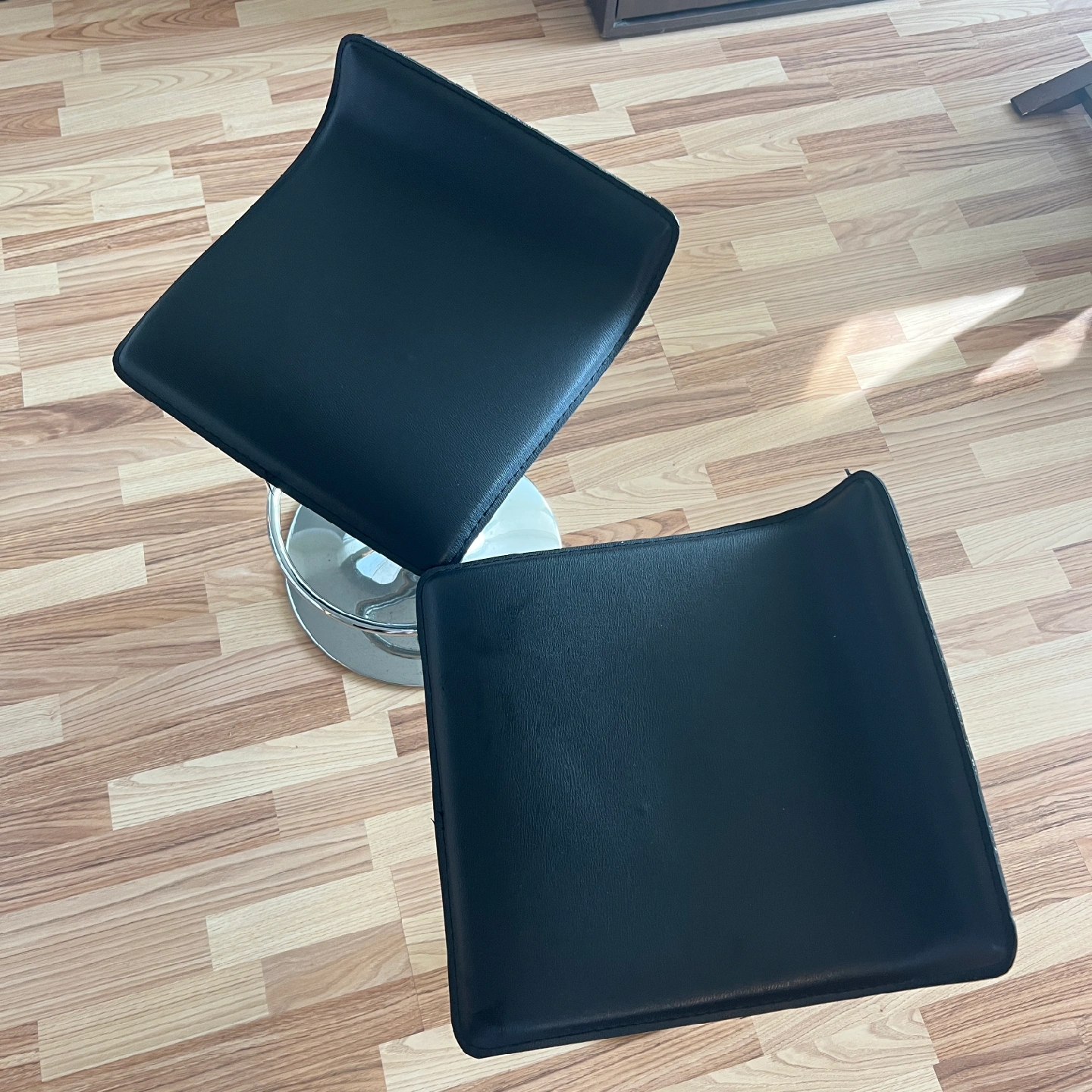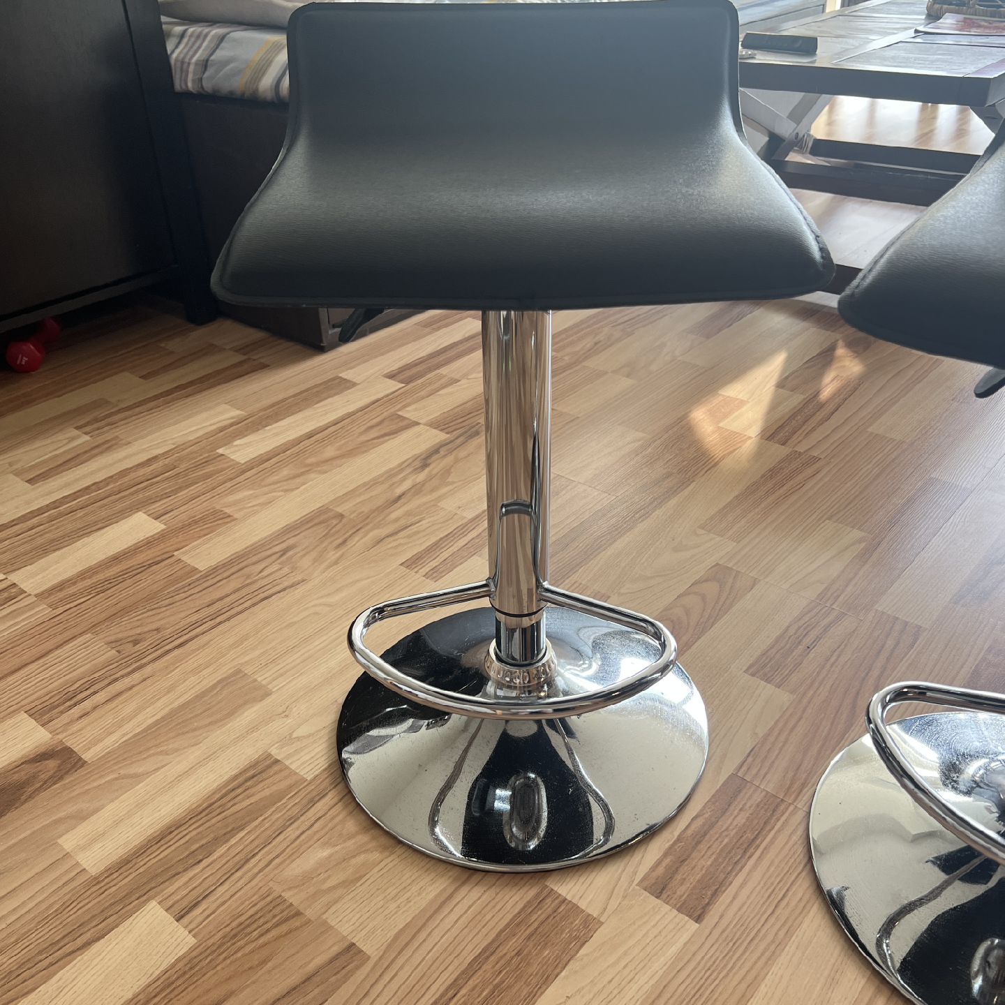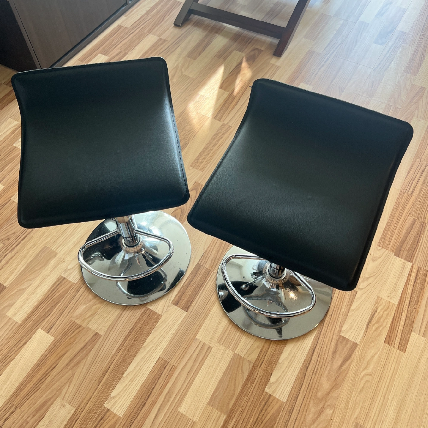 Selling a pair of black swivel bar stools. They're in good condition and would look great in any kitchen or bar area! The height is adjustable, so you can customize them to your needs. They have a modern design with a chrome base and a comfortable padded seat. $25 each.