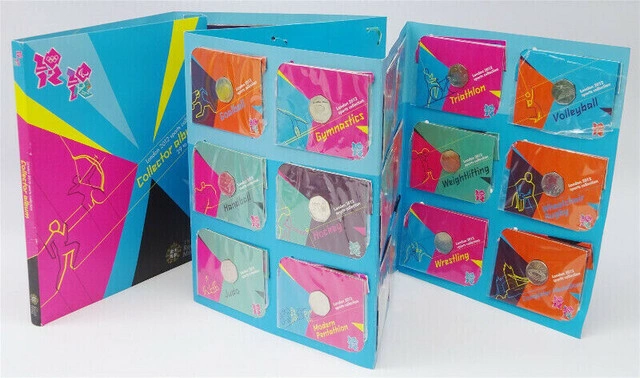 London 2012 complete sports collection of twenty-nine Olympic fifty pence pieces and a completer medallion, housed in The Royal Mint collector album. Brand new. SEALED VERSION COME WITH THE CARD IN PLASTIC WRAPPER AND ALBUM. 29 coin set + Completer Medallion. Feel free to message if you have any questions!