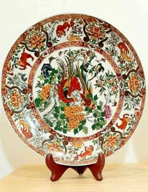 Fine China ,Saji Decorative Table Plate With Table Stand. Theme : Pheasants & Flowers Pattern. Diameter : 24 cm - 9.50 inches. Stamped :