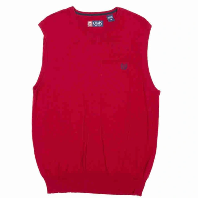 113This is a used Chaps men's vest in red, featuring a V-neck and tight knit design, perfect for layering. This sleeveless vest is a size XXL. Additional specifications include: * Brand: Chaps * Colour: Red * Size: XXL * Style: V-Neck, Sleeveless * Material: Knit OBO Please take a look at my other listings Bundle and save!