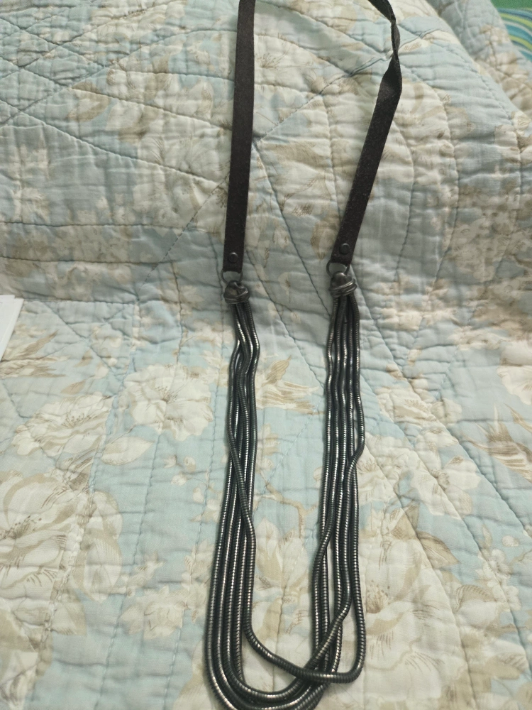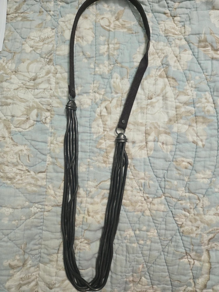 36vintage velvet brown strap statement necklace with gunmetal tone accents! It's in great shape and ready to add some flair to your outfits