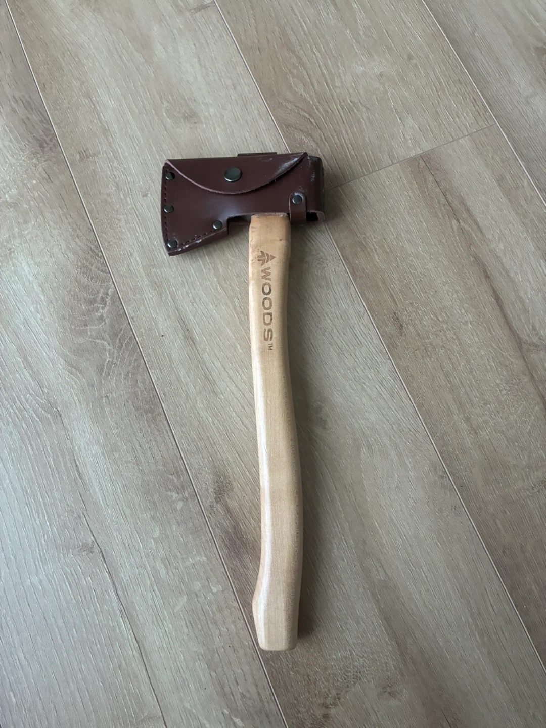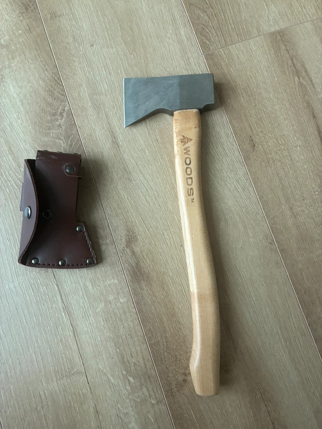 104Selling a Woods axe that's in great condition! It comes with a leather sheath for safe storage and transport. The axe head is sharp and ready for use. Perfect for camping, hiking, or any outdoor activities. It's a reliable tool to have on hand