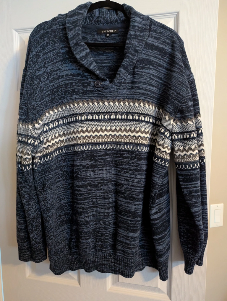 Cozy Britches sweater in a lovely blue patterned design! Perfect for layering during the cooler months. In great condition and ready for a new home! 3xl,
