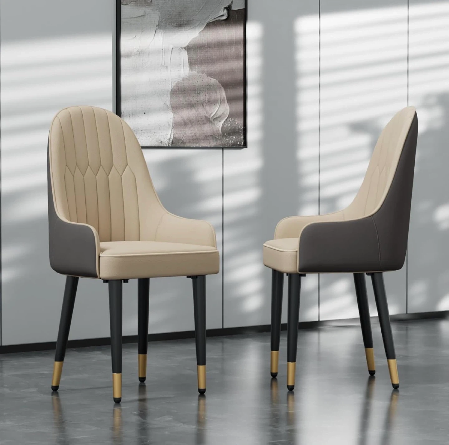 Selling two brand new comfortable dining chairs featuring two tones microfiber leather. Original price was $598 before tax.