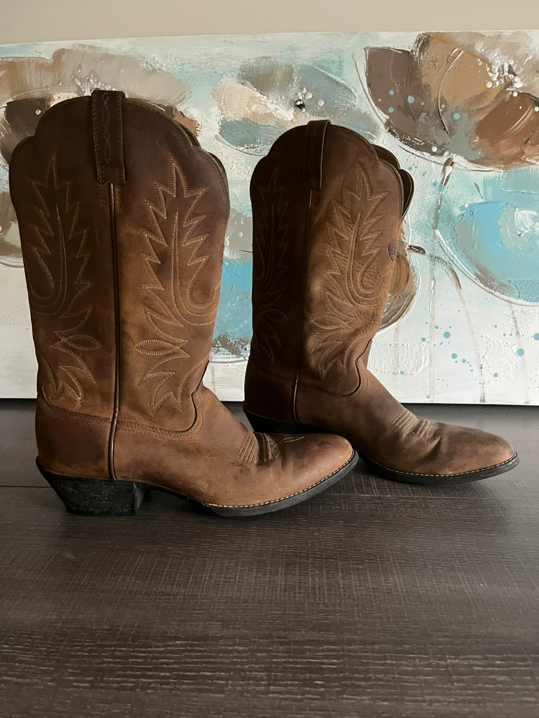 Pick up in Utopia. Selling a pair of Women’s Ariat cowboy boots in a classic brown leather! Size 10B These boots have a stylish design. Perfect for adding a touch of western flair to your wardrobe!