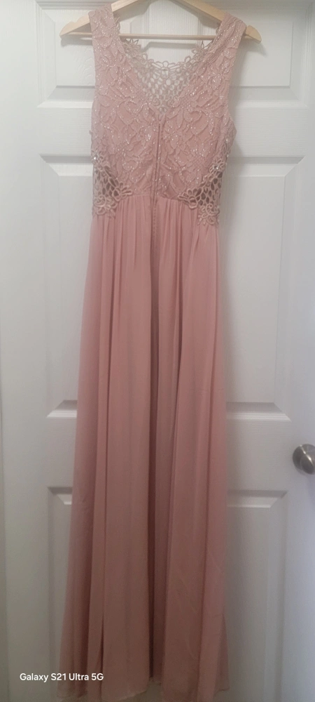 Selling a beautiful pink maxi dress with a delicate lace top! It's perfect for a special occasion or a night out. The dress is in great condition and has a flattering silhouette.Tge dress has a matching mask!