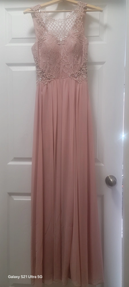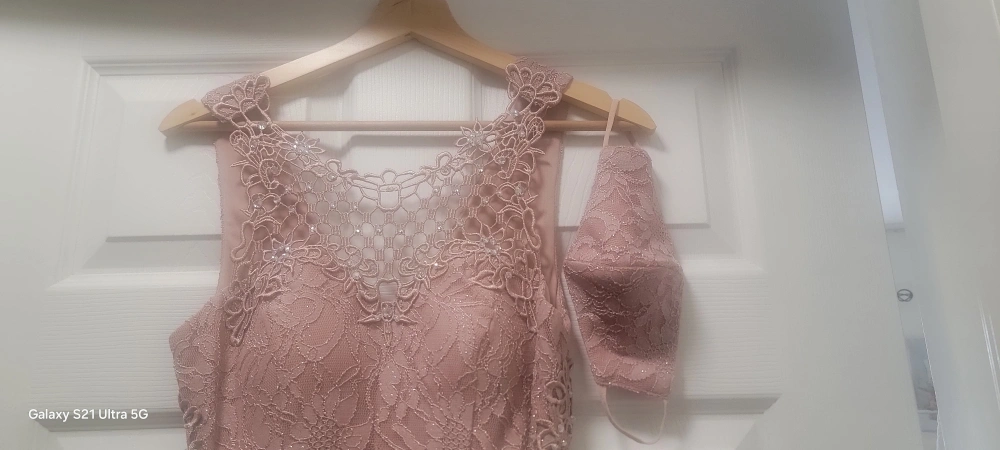 Selling a beautiful pink maxi dress with a delicate lace top! It's perfect for a special occasion or a night out. The dress is in great condition and has a flattering silhouette.Tge dress has a matching mask!