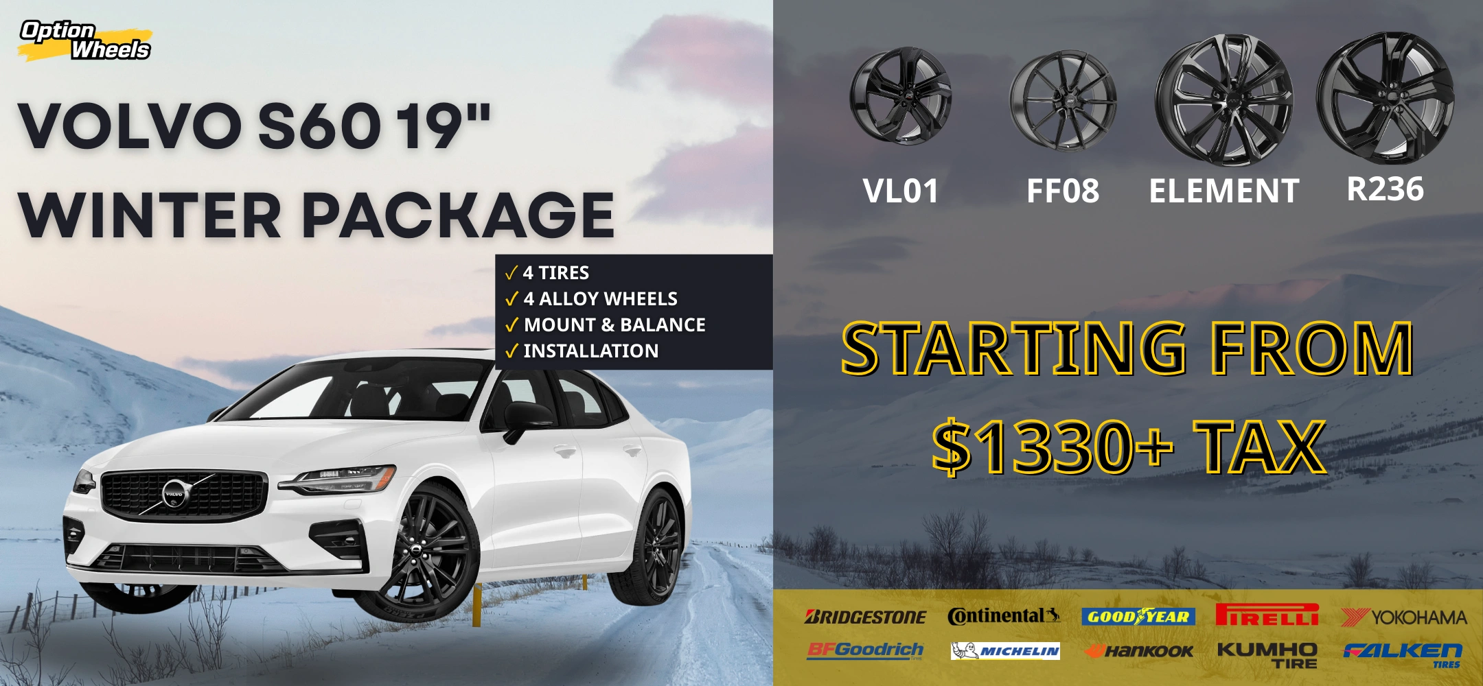 65❄️ Sport sedan safe in snow. 💰 Price Range: $1330 – $2705 + Tax ✔️ 4 Wheels + 4 Winter Tires ✔️ FREE Oakville Install ✔️ GTA Mobile +$100 Highlights: Wheels: OPE FF08, RS VL01, DAI Element, DAI Replica 236 Tires: Michelin X-ICE Snow, Continental VikingContact, Bridgestone Blizzak, Triangle 📍 Option Wheels – Oakville, ON 📲 DM @optionwheels_ for Volvo S60 winter packages today!