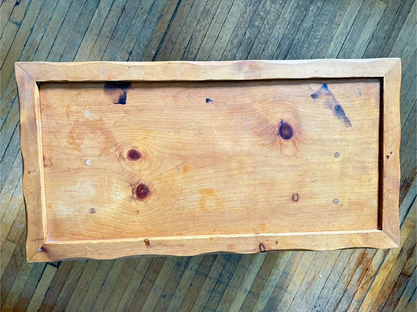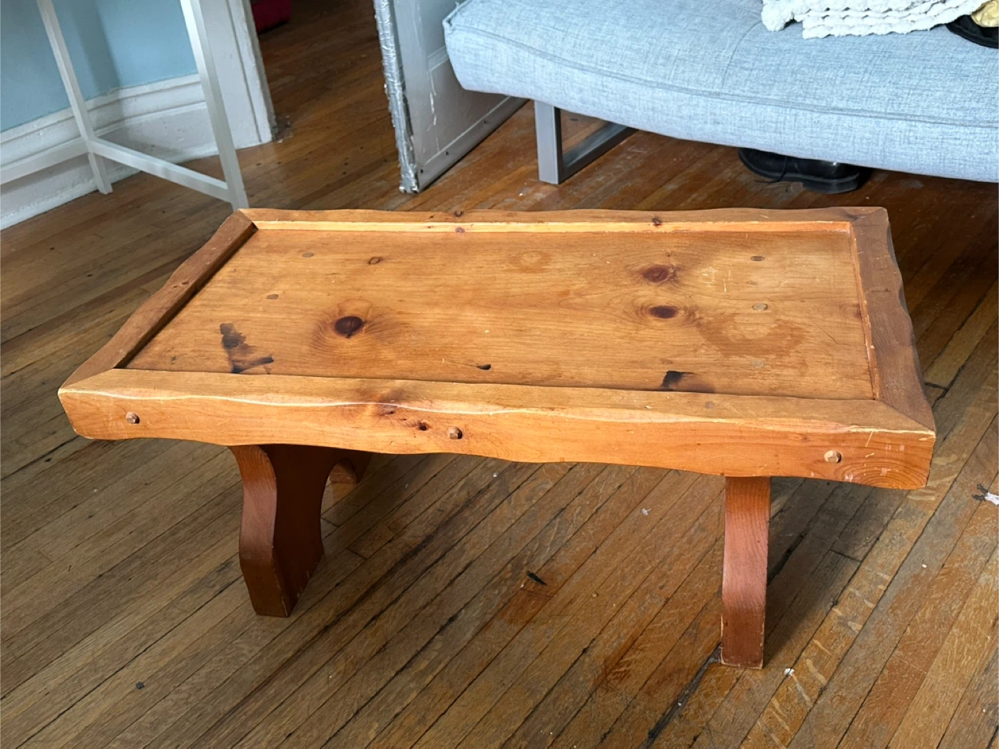 Selling a wooden coffee table. It has a unique rustic look with a natural wood grain finish. Perfect for adding a touch of warmth to your living space!