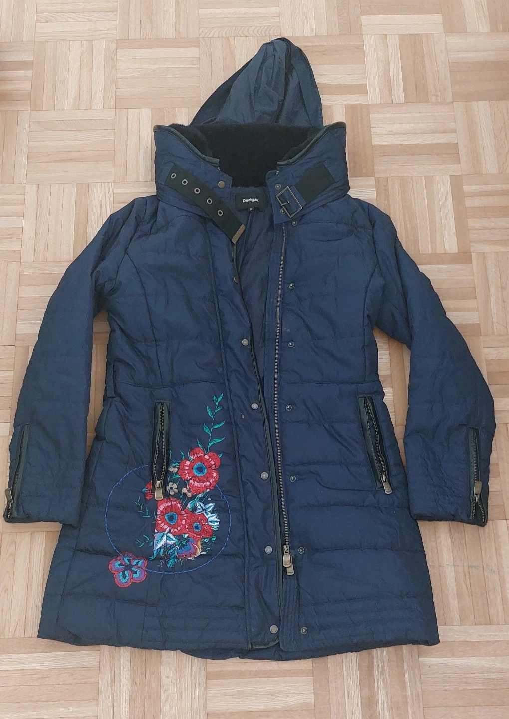 42Cozy Desigual winter coat in size M. It's a stylish and warm choice for the colder months! Features a unique floral design and a comfortable, insulated lining. Perfect for staying snug and fashionable this winter