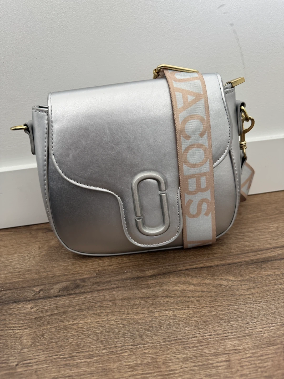Selling a stylish Marc Jacobs crossbody bag in a beautiful metallic silver colour! The strap has the brand name on it. It's in great condition, clean from inside and perfect for adding a touch of shine to any outfit. Comes from a clean home pets free & smoke free. Feel free to check out my other listing! Thanks:)