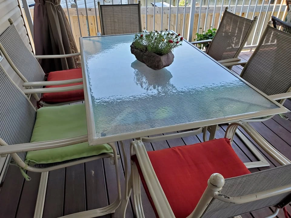 Patio Table w/ 6 Chairs in excellent conditions. Cushions not included but can be sold as well.