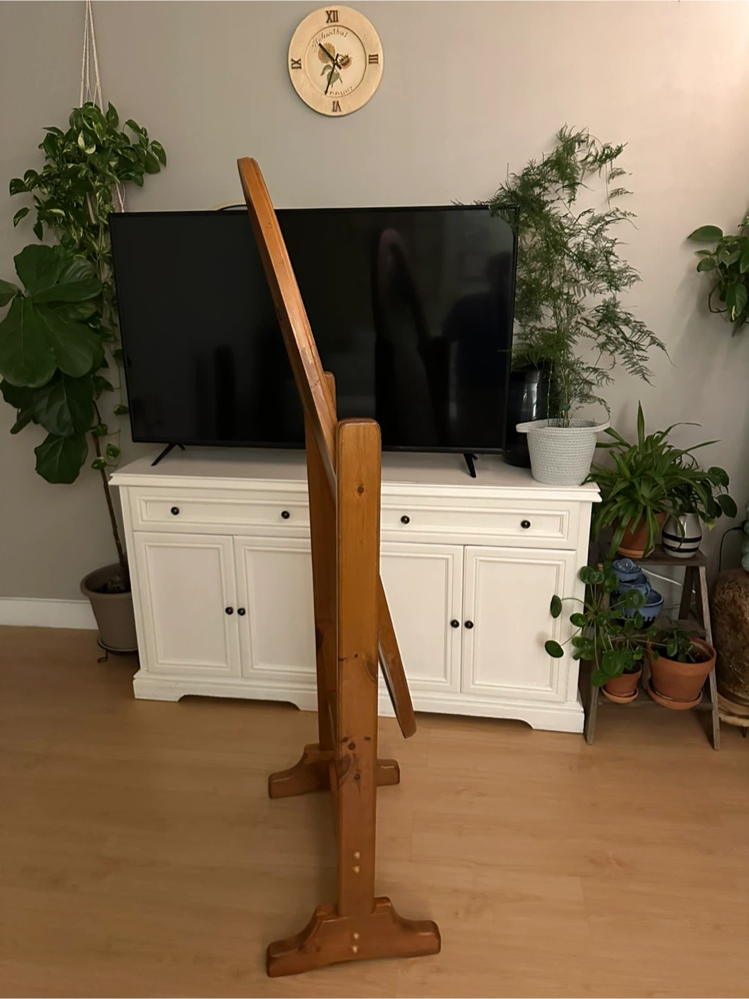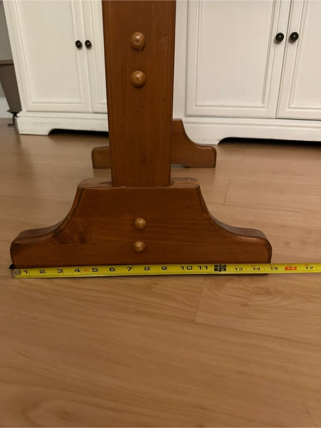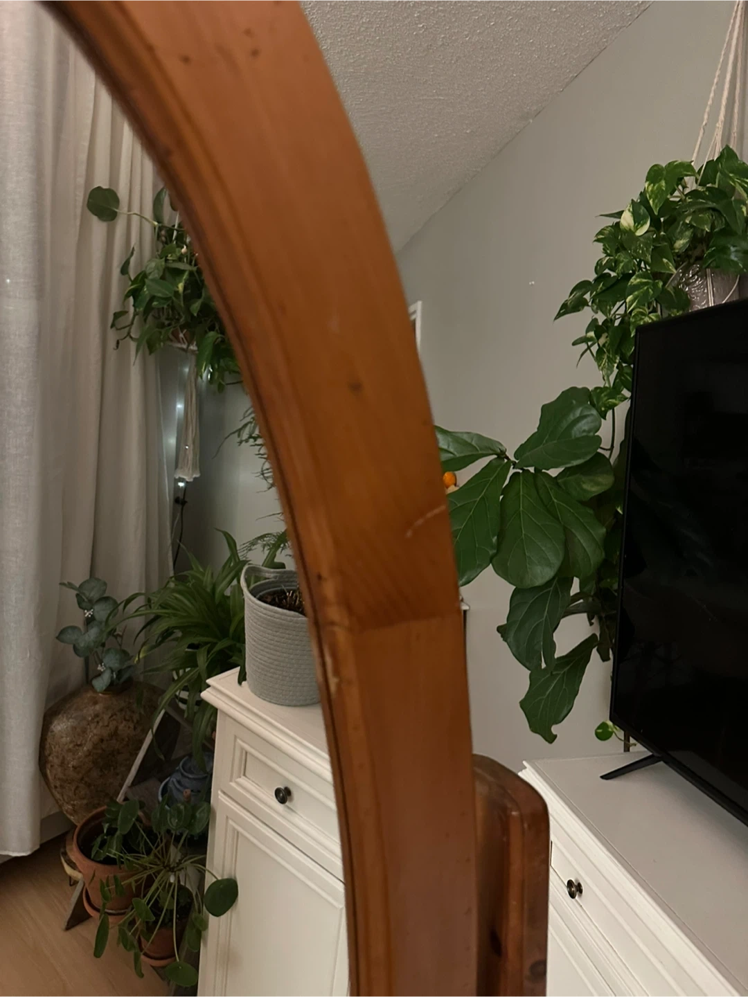 Selling a lovely oval-shaped floor mirror with a wooden frame. It's in great condition and would look perfect in a bedroom or living room. The mirror is sturdy and provides a full-length reflection. It's a great addition to any home!