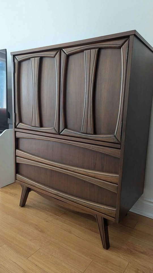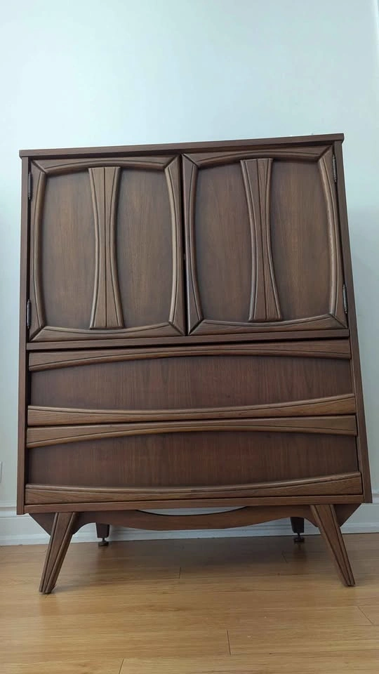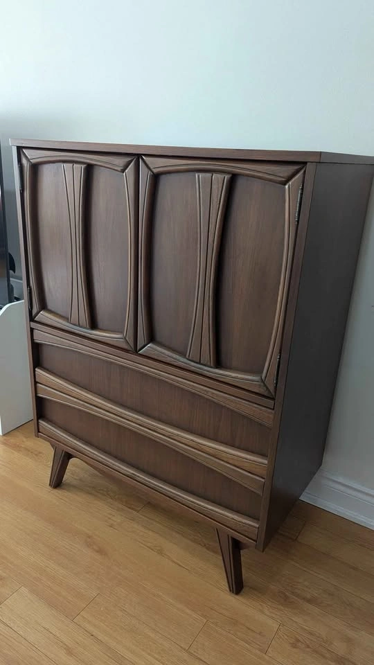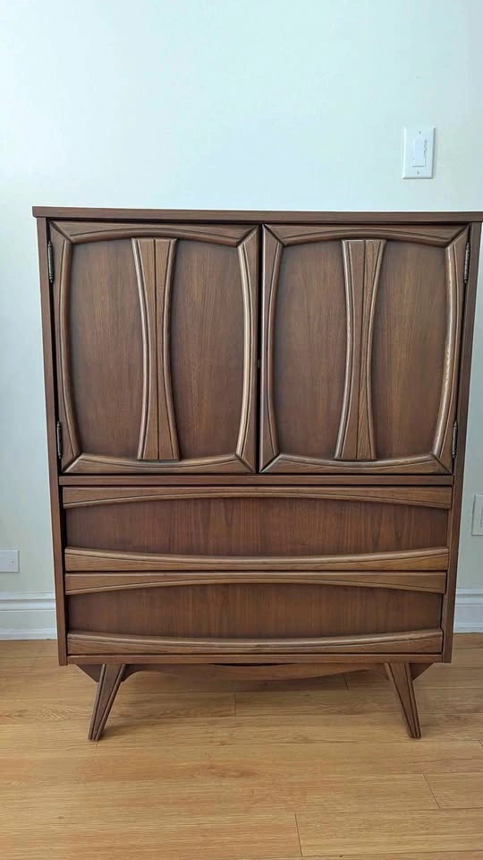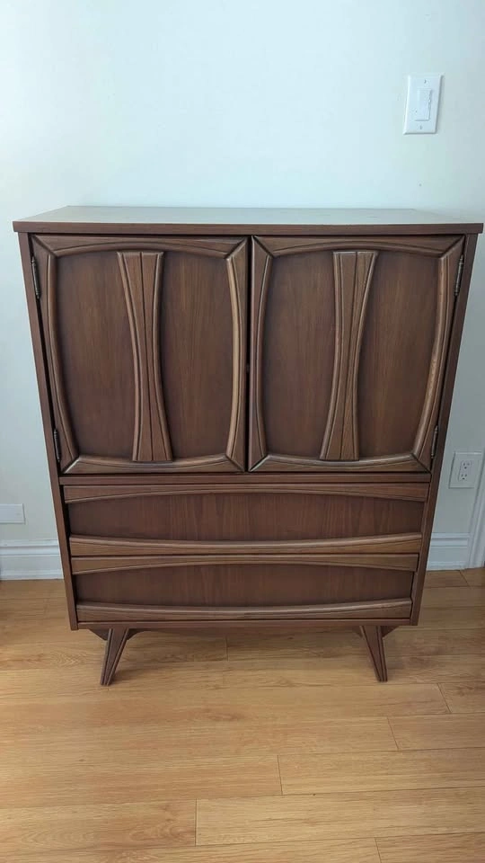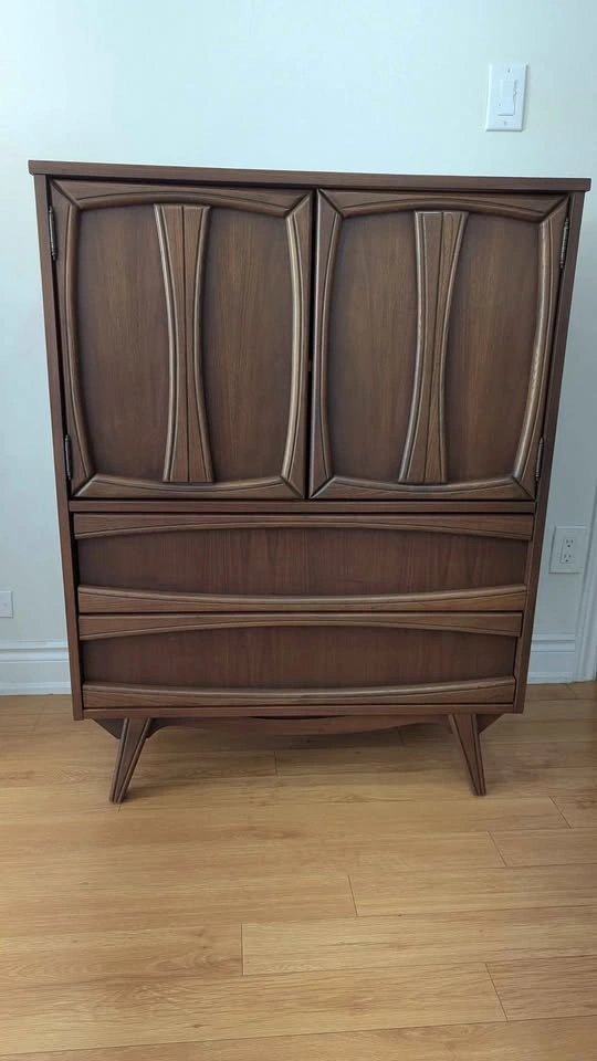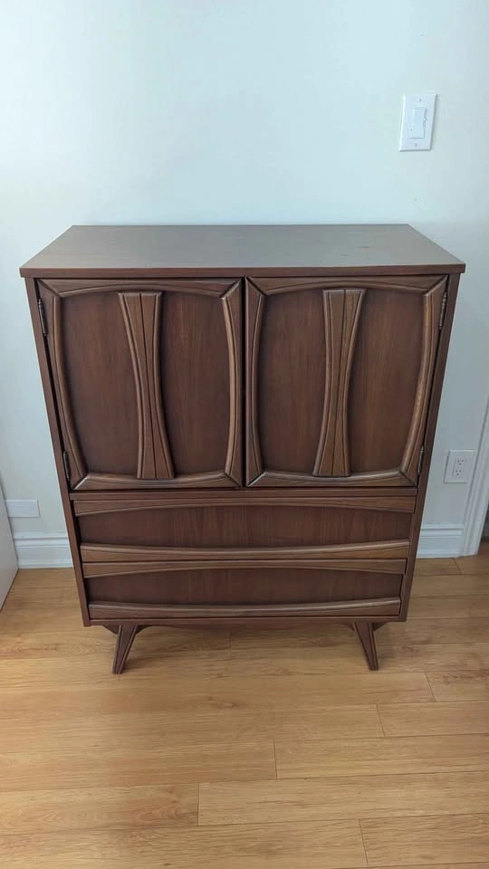 10Great Condition Rare MCM Vintage piece for your collection. Highboy/ Tallboy Dresser with Cedar wood inside the top doors to keep Linens safe. I also have the matching Chest if you are interested for your collection.
