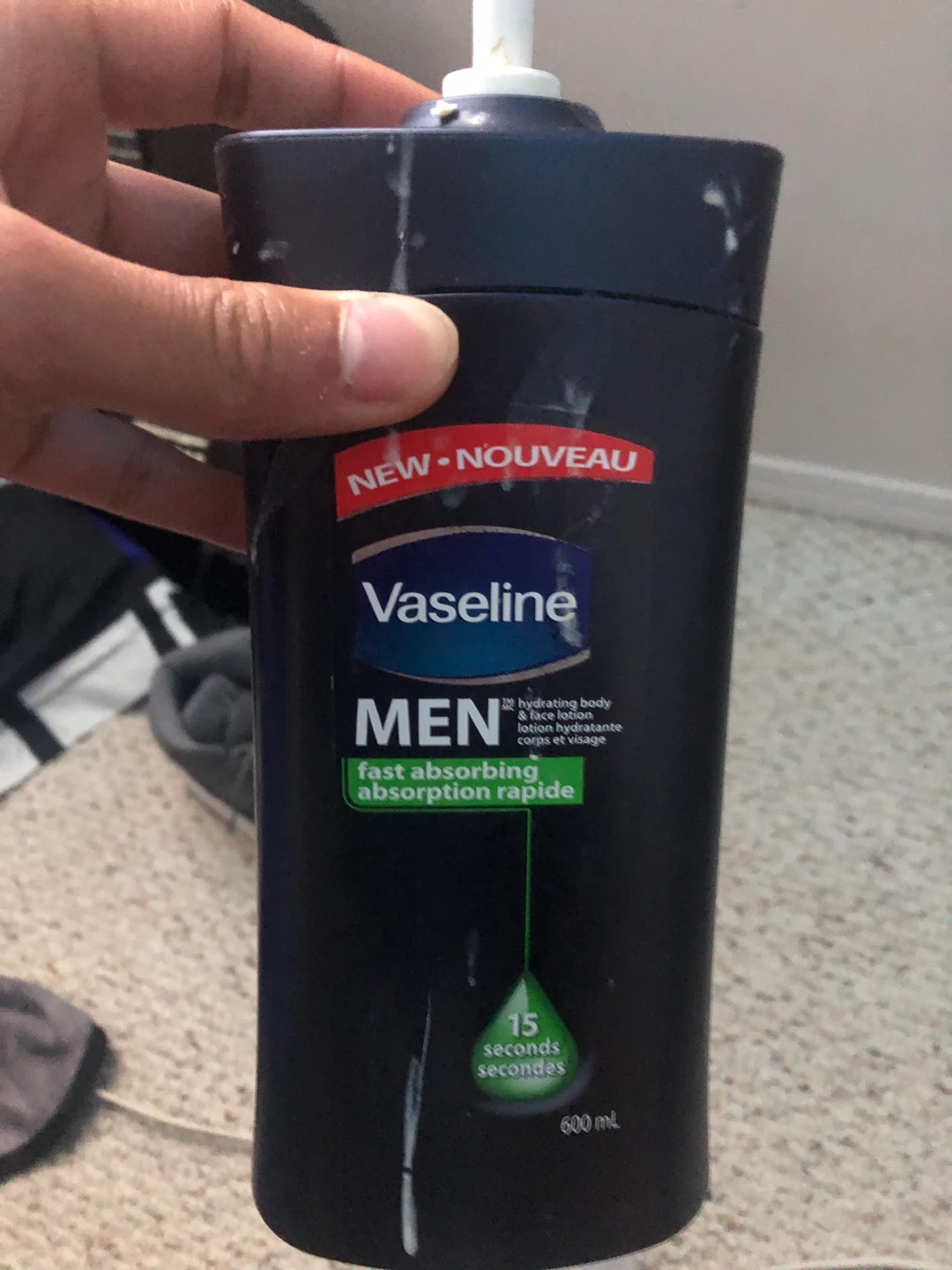 Selling a bottle of Vaseline Men hydrating body and face lotion. It's a fast-absorbing lotion that comes in a 600ml bottle. Perfect for daily use to keep your skin moisturized!