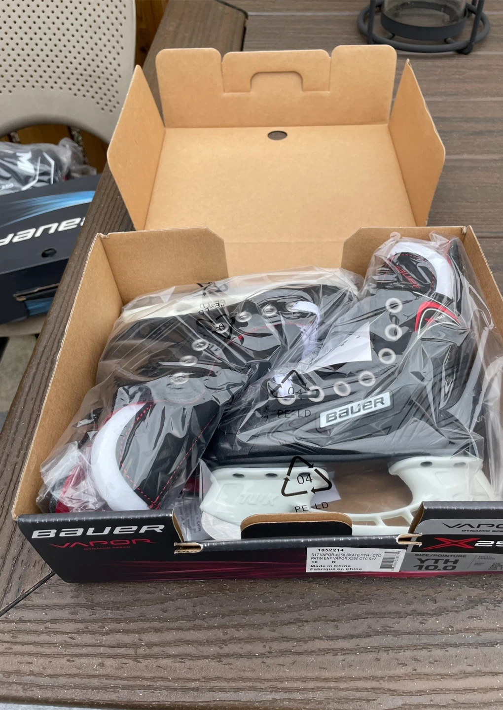 38Selling a pair of Bauer Vapor X250 youth ice hockey skates. They are size 10 and come with the original box. Great for young players looking to improve their game!