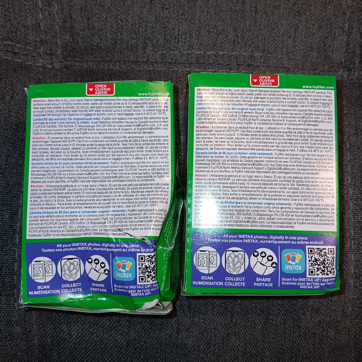 Selling two packs of Fujifilm Instax mini film! Each pack contains 20 sheets/feuilles/hojas. The expiration date is 2026 May, so they're fresh and ready to capture your memories!
