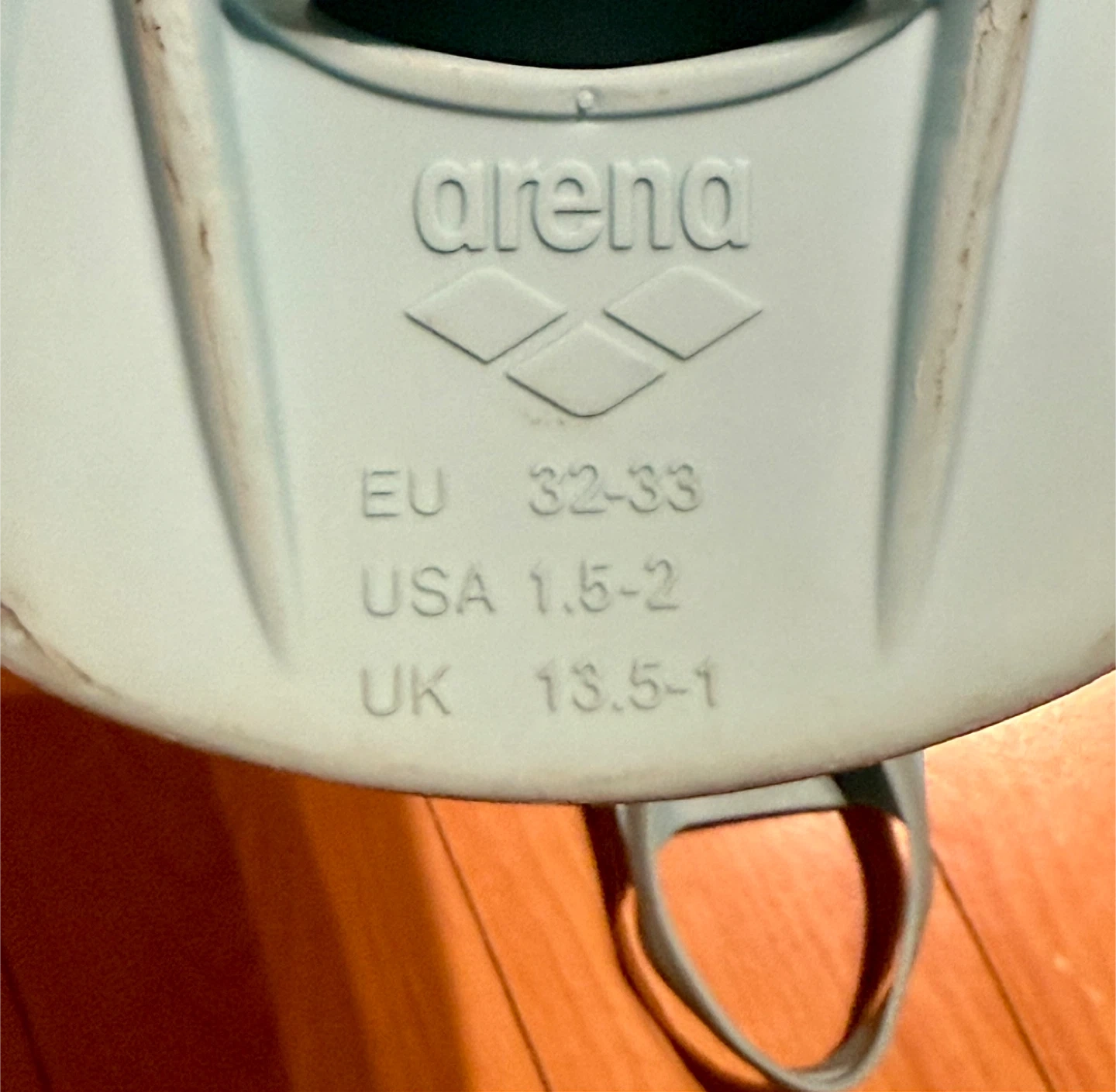 Selling a pair of Arena short blade training fins! They're in great shape and come with the original box. These fins are size US 1.5-2 (EU 32-33, UK 13.5-1). Perfect for building leg strength and improving ankle flexibility during your swim workouts