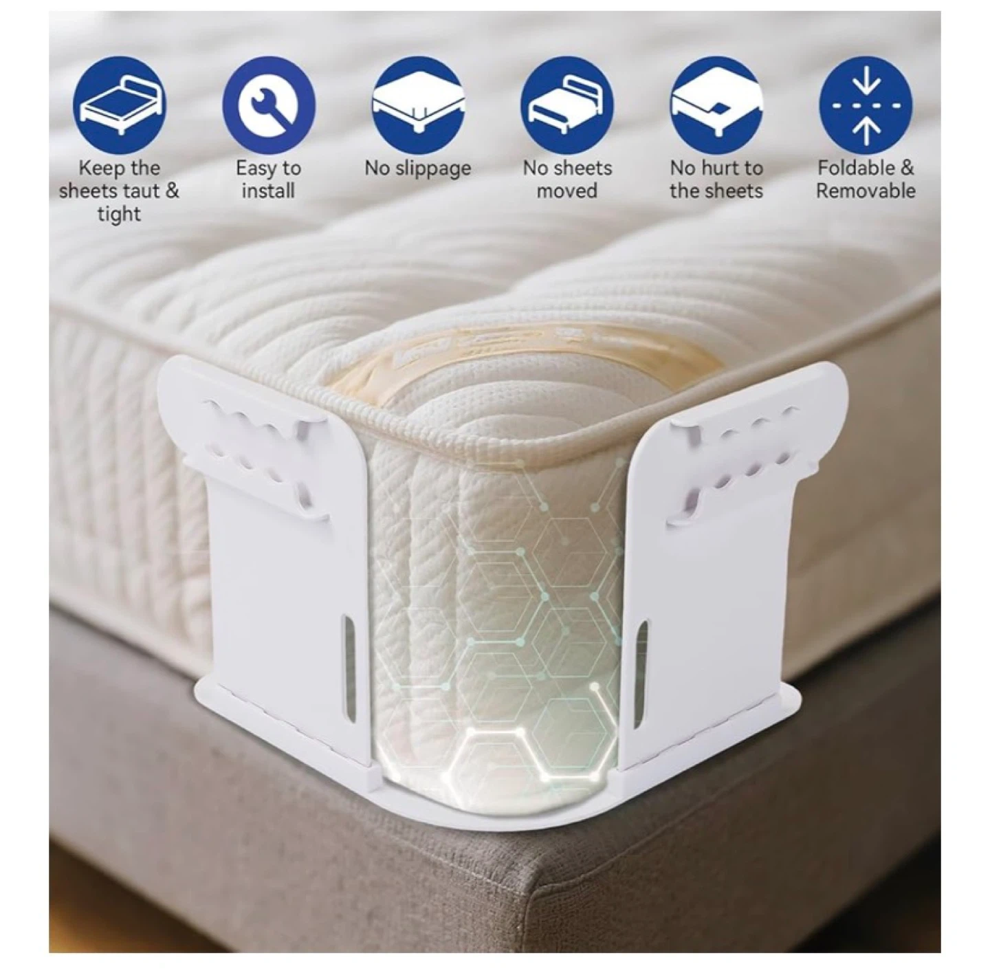 Keep your bed sheets perfectly in place with these lock sheet holders! They're designed to keep the sheets taut and tight, preventing slippage and ensuring a neat and tidy bed. Easy to install and remove, these holders are a great addition to any bedroom