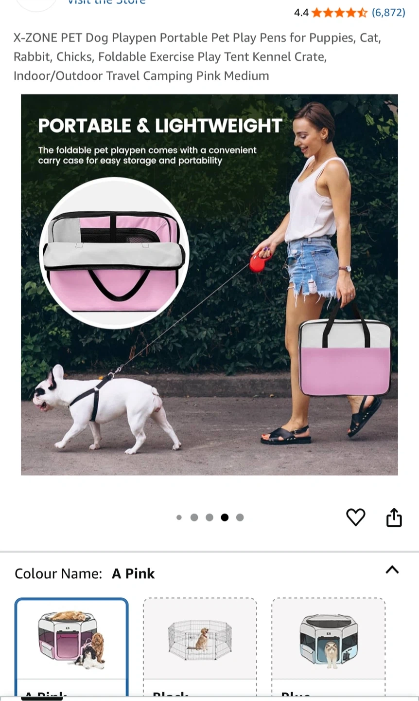 73Selling a portable and lightweight X-ZONE PET dog playpen in pink! This foldable exercise play tent kennel crate is perfect for indoor or outdoor use. It's medium-sized and comes with a convenient carry case for easy storage and portability