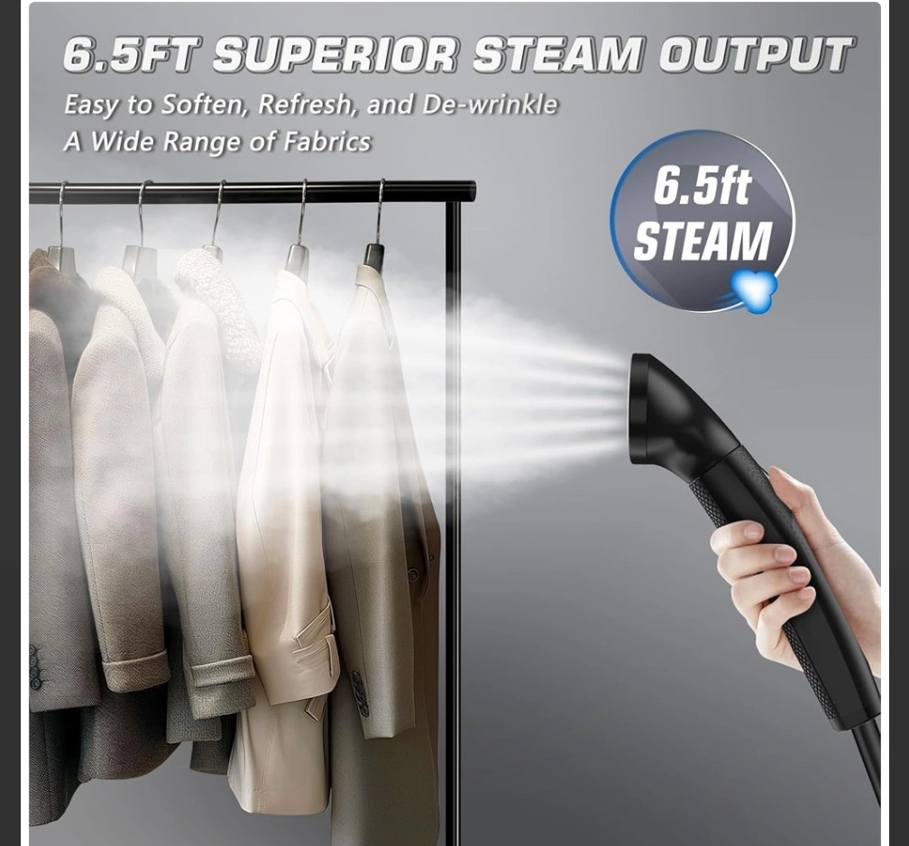 This Anthter garment steamer heats up quickly and emits a powerful steam to easily soften, refresh, and de-wrinkle a wide range of fabrics! It's equipped with a 6.5ft steam output for superior performance