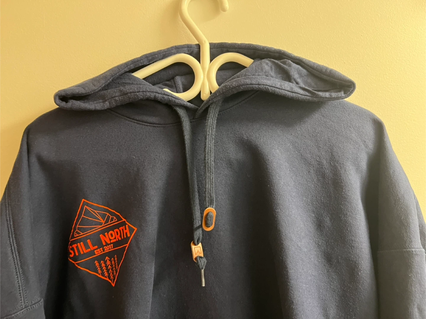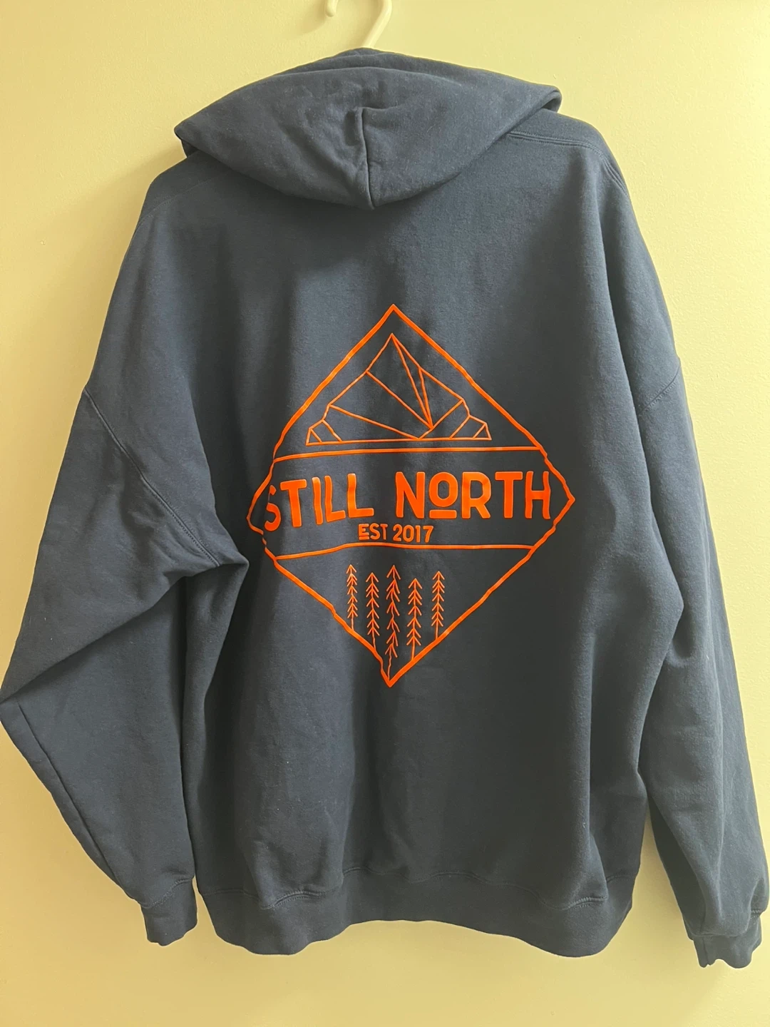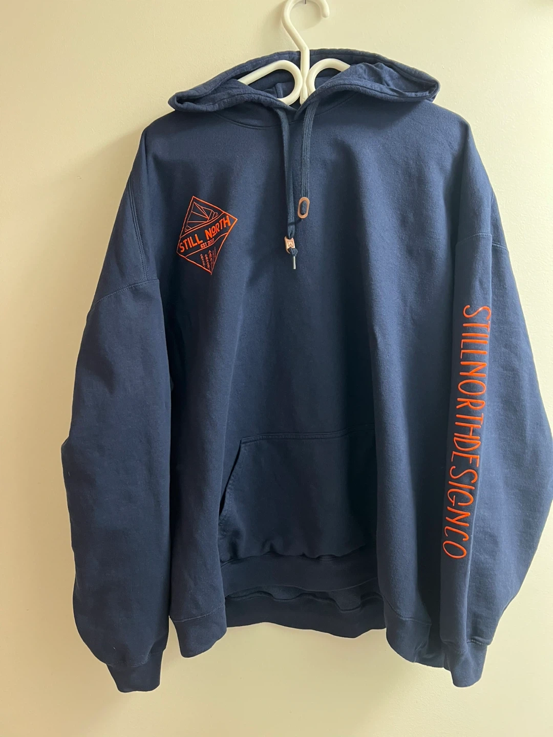 10Cozy Still North hoodie in a lovely navy blue! It's a size 3XL and made of 80% cotton and 20% polyester. Perfect for those chilly Canadian evenings
