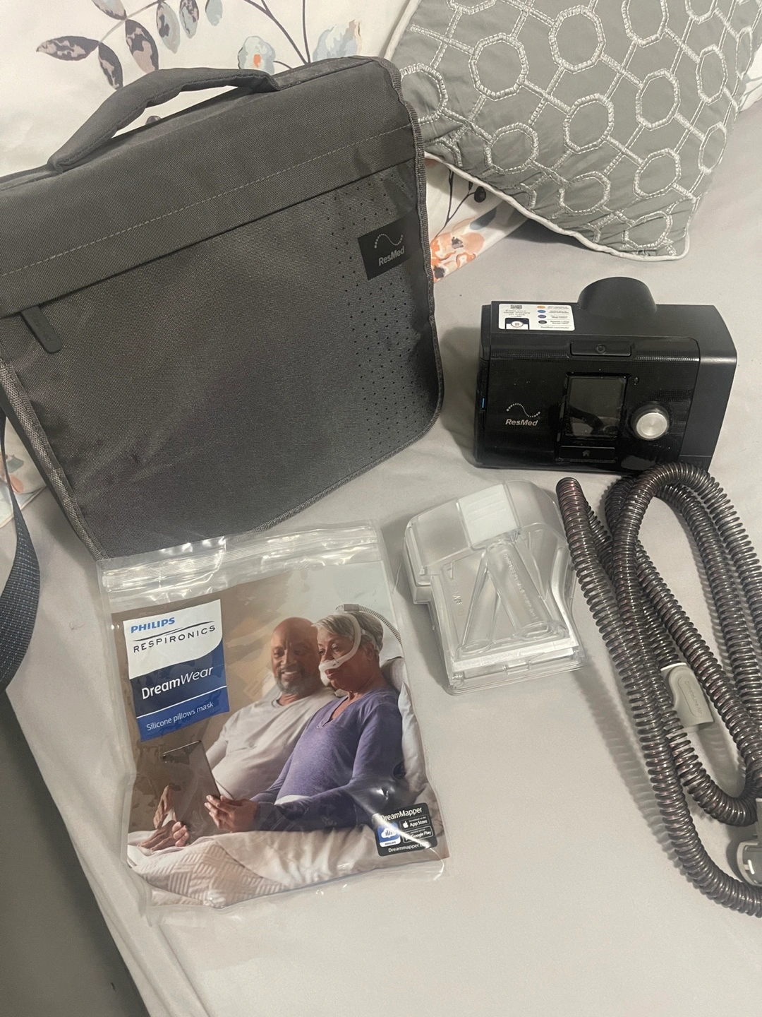 86Selling a ResMed AirSense 10 CPAP machine along with a Philips Respironics DreamWear silicone pillows mask. Includes the machine, water chamber, tubing, power supply, and a carrying case. Everything is in great condition and ready to use!