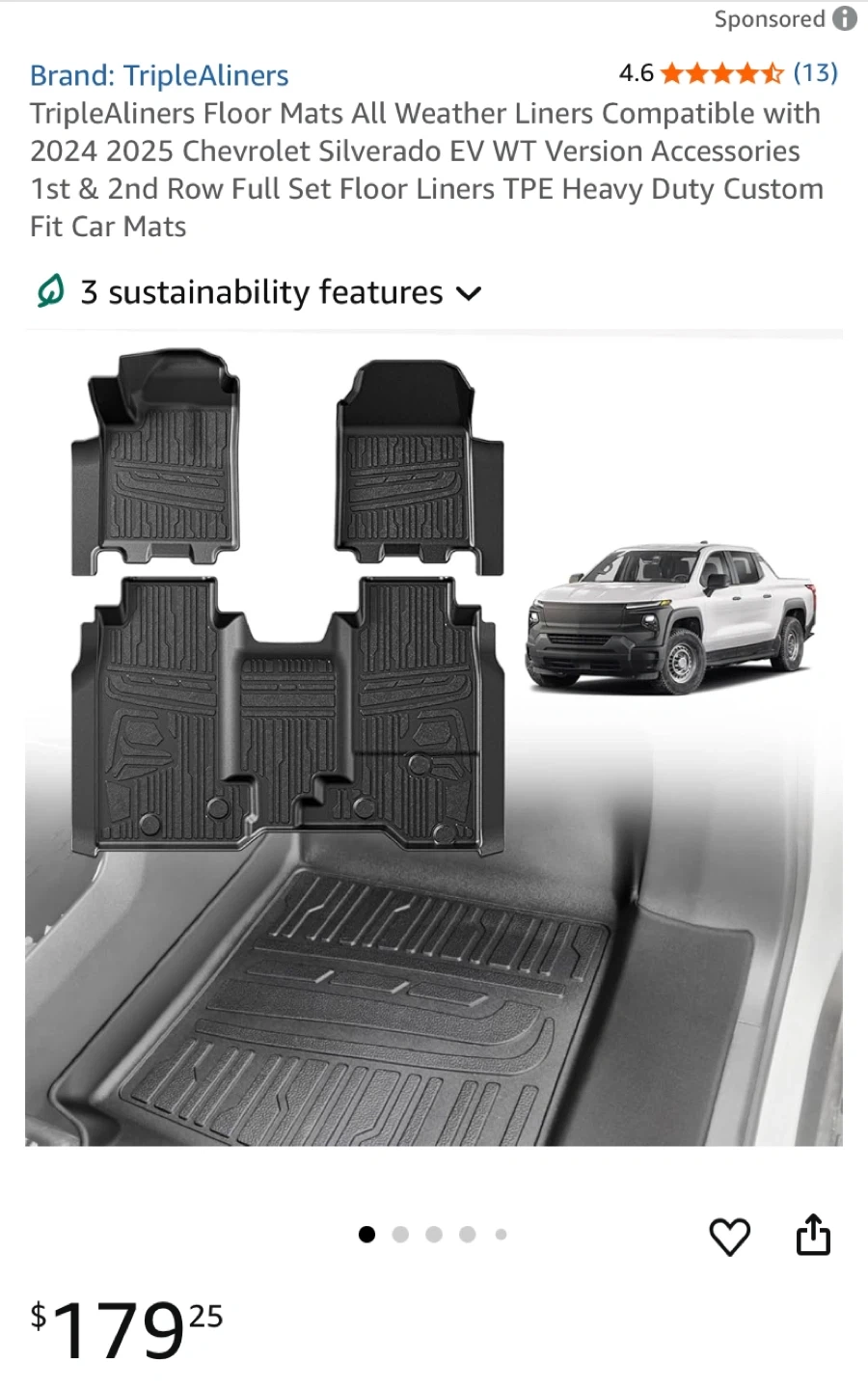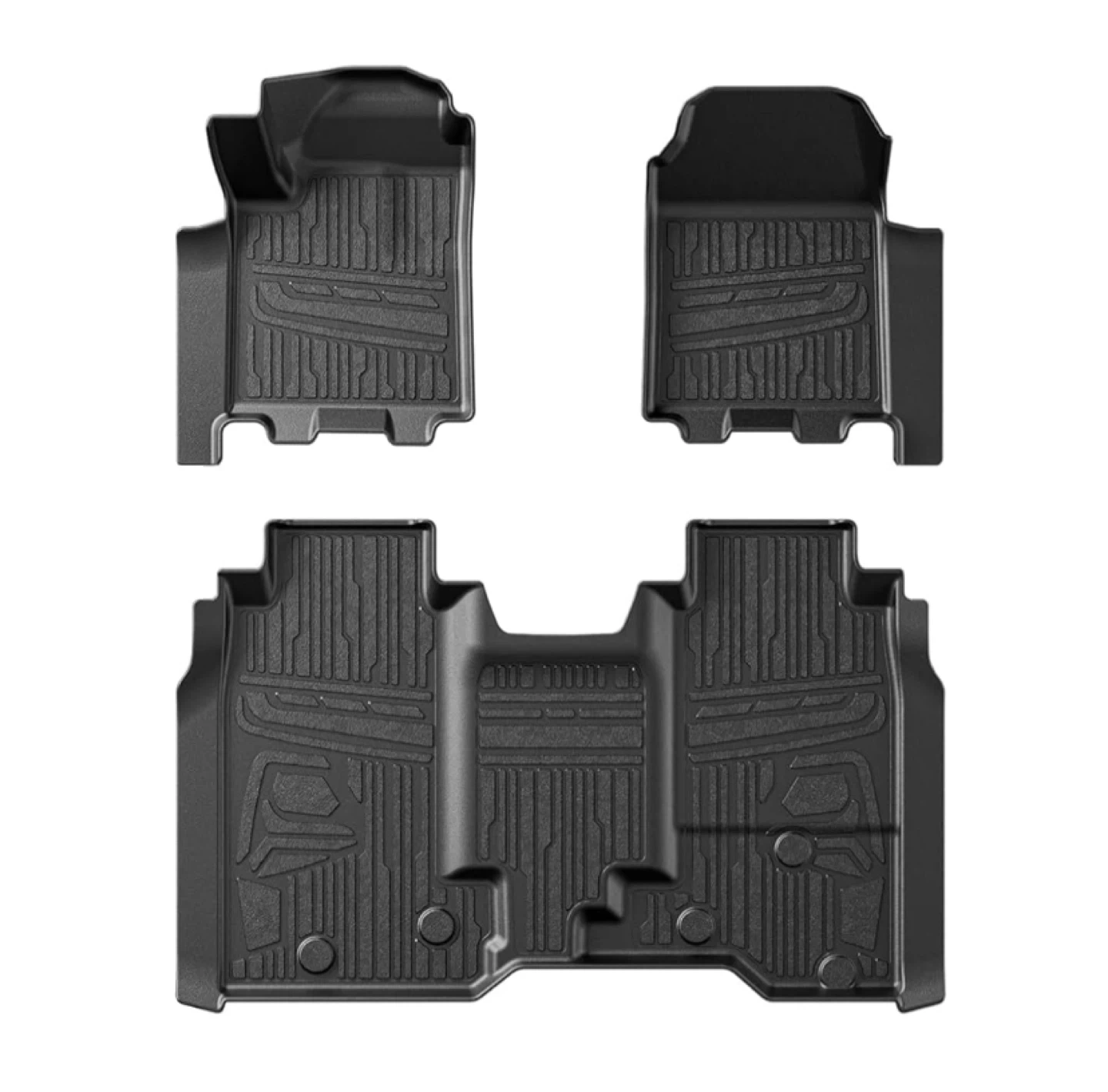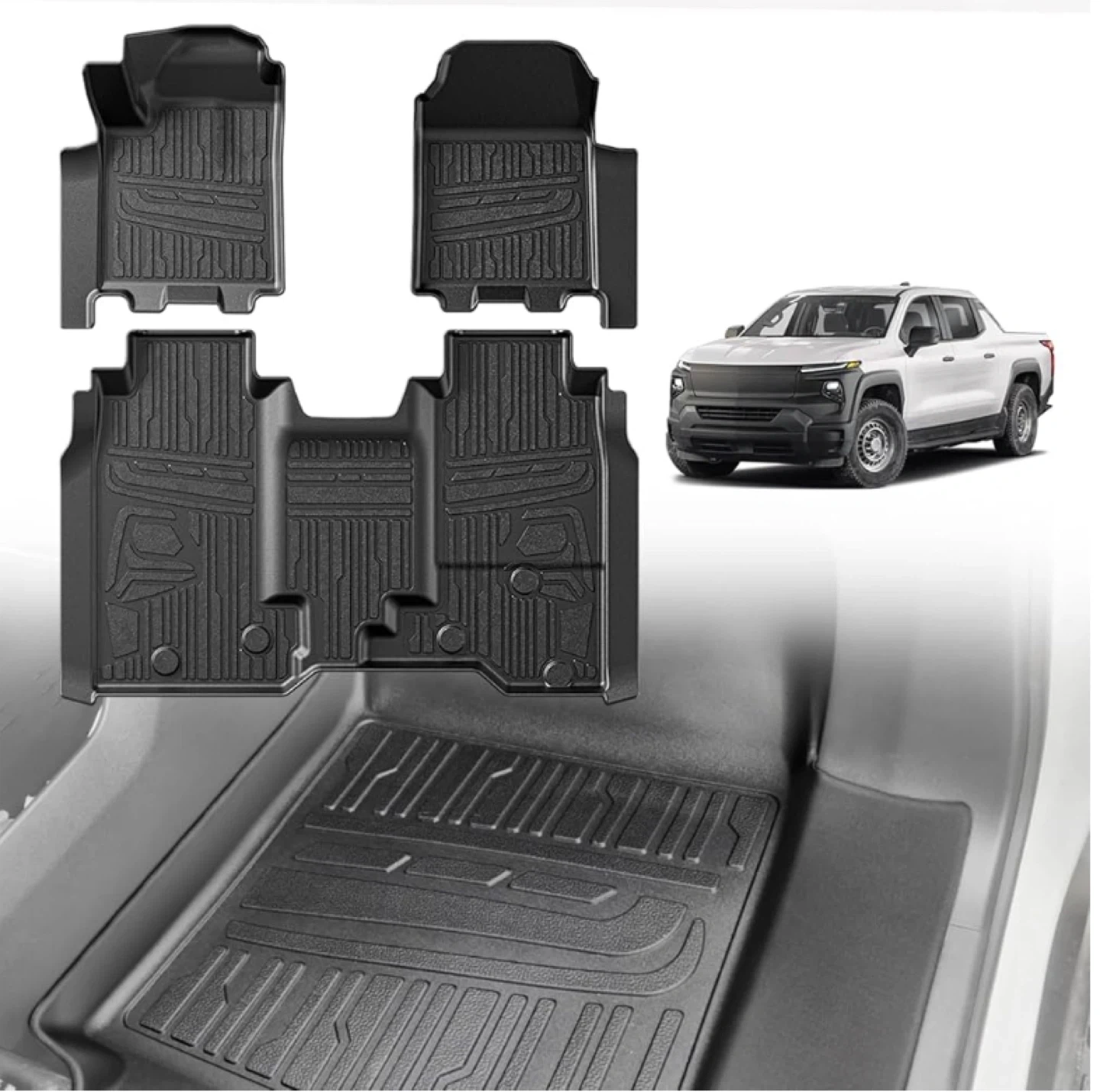These Triple A Liners floor mats are designed to fit the Silverado EV WT model perfectly. They feature a raised edge protection and extended edges, plus raised edge walls for extra coverage. The FortiGrip material offers enhanced slip-resistance and quick recovery after folding. They're designed with an advanced anti-slip 3D texture to enhance driving safety, especially on rainy days.