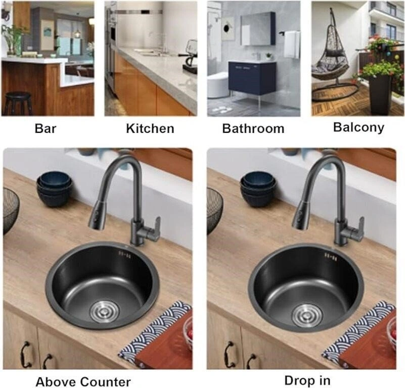 Kitchen Sink - Stainless Steel Sink - Single Bowl Undermount Kitchen Sink - Round - 30cm Diameter - Ideal for Kitchen Sink, Bar Sink or Outdoor Sink