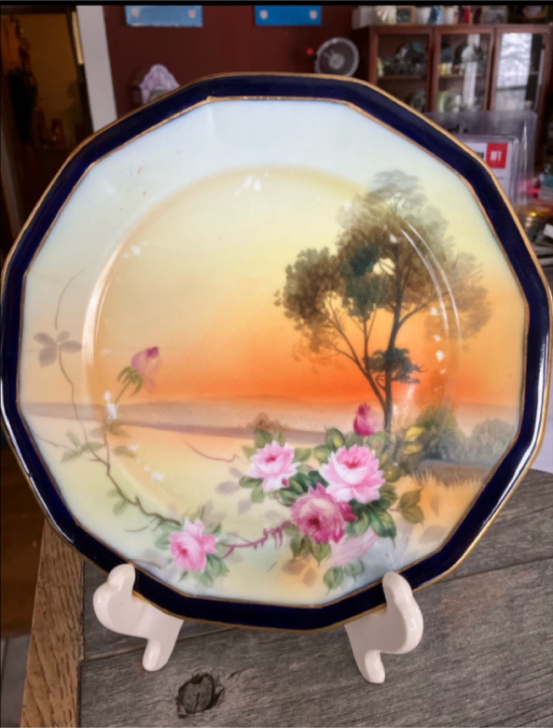 11 vintage Nippon porcelain plates 8 “ hand-painted details, plates features a beautiful sunset floral natural displayed pink roses with gold trim hang on wall or used for special occasions,