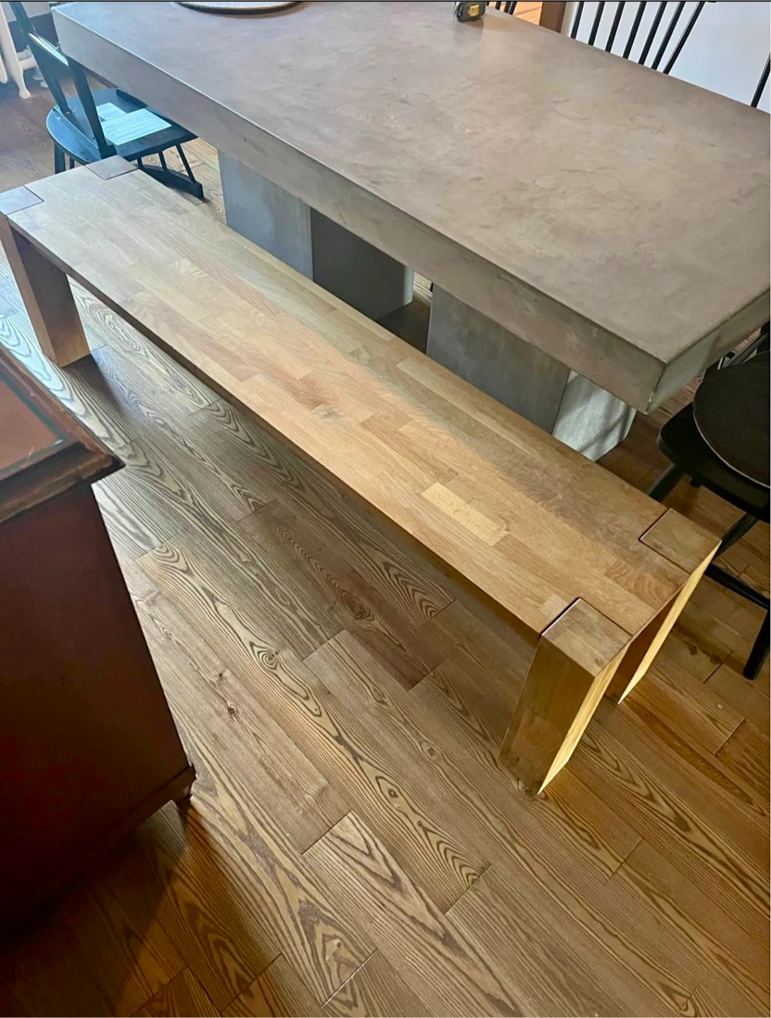 Beautiful oak, 3-person dining bench. Some water markings otherwise great condition. Could be revived with a fresh stain.