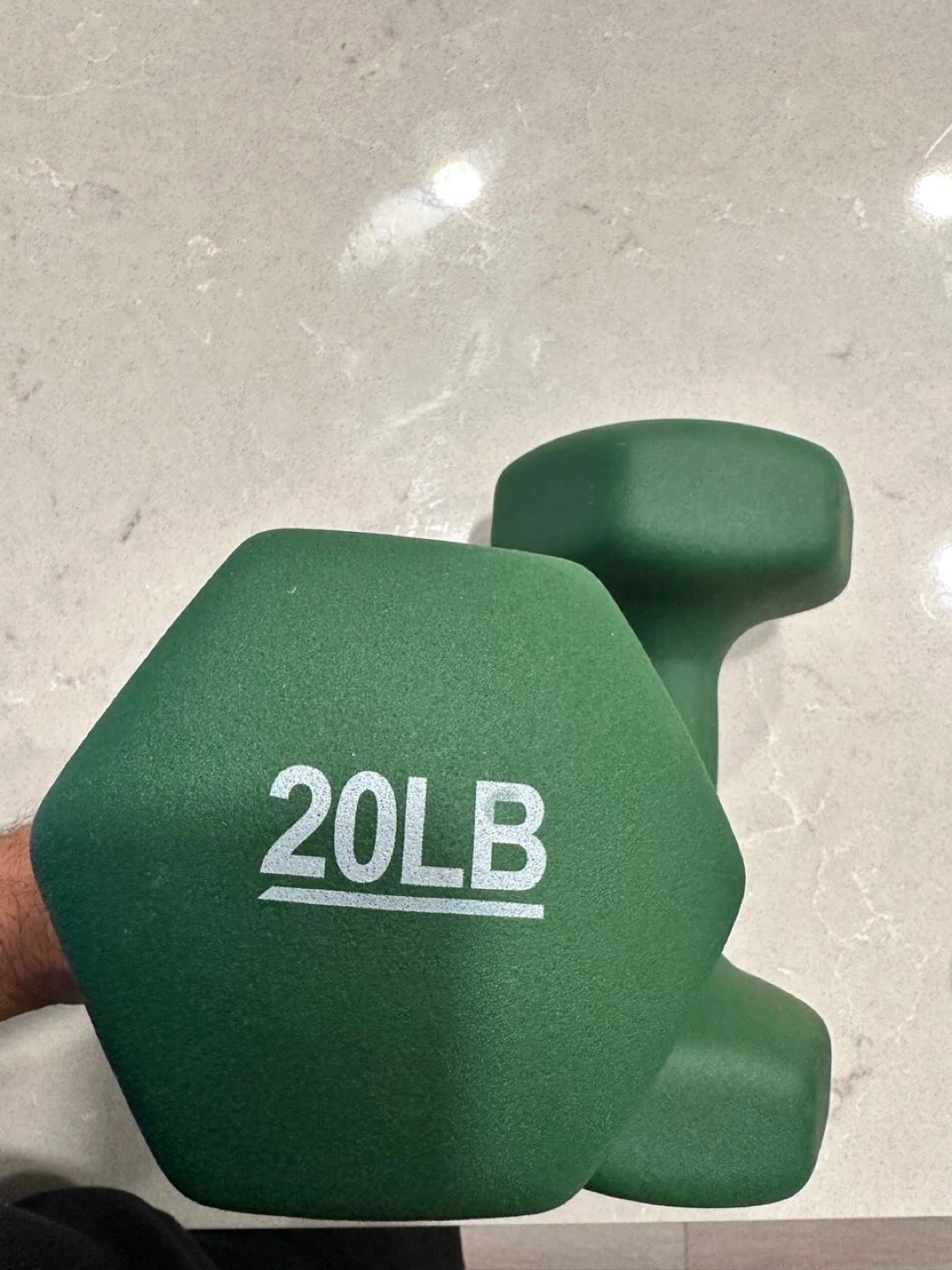 - 1 pair of 20 lb dumbbells (green)