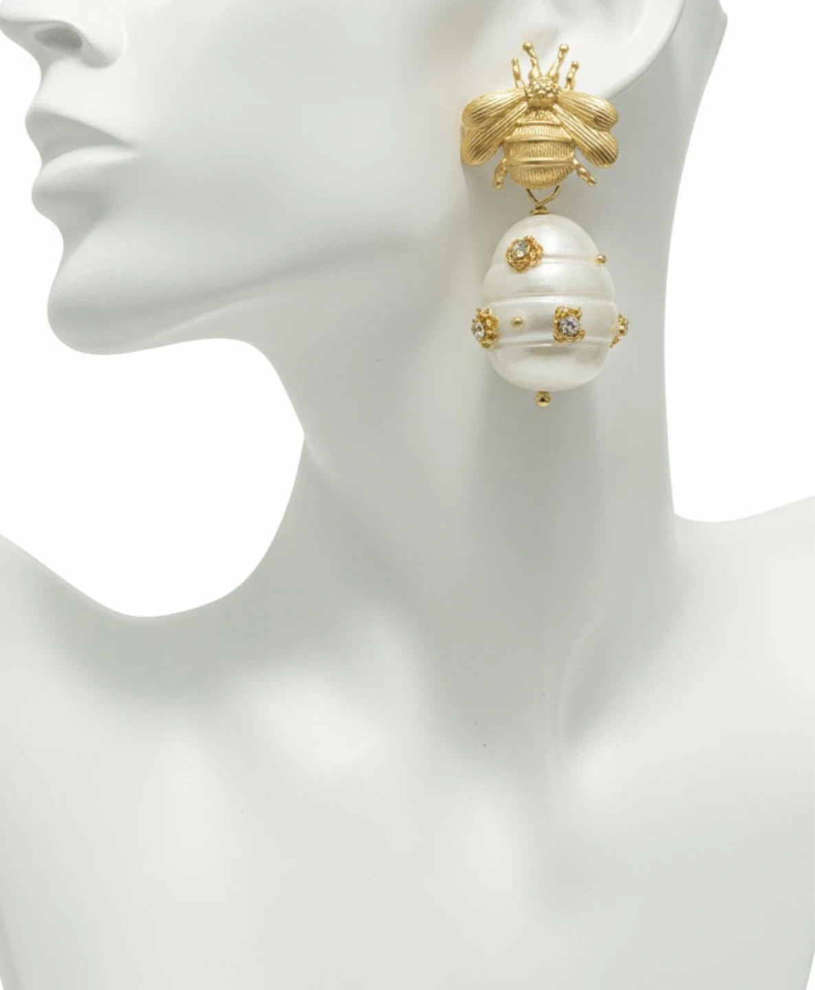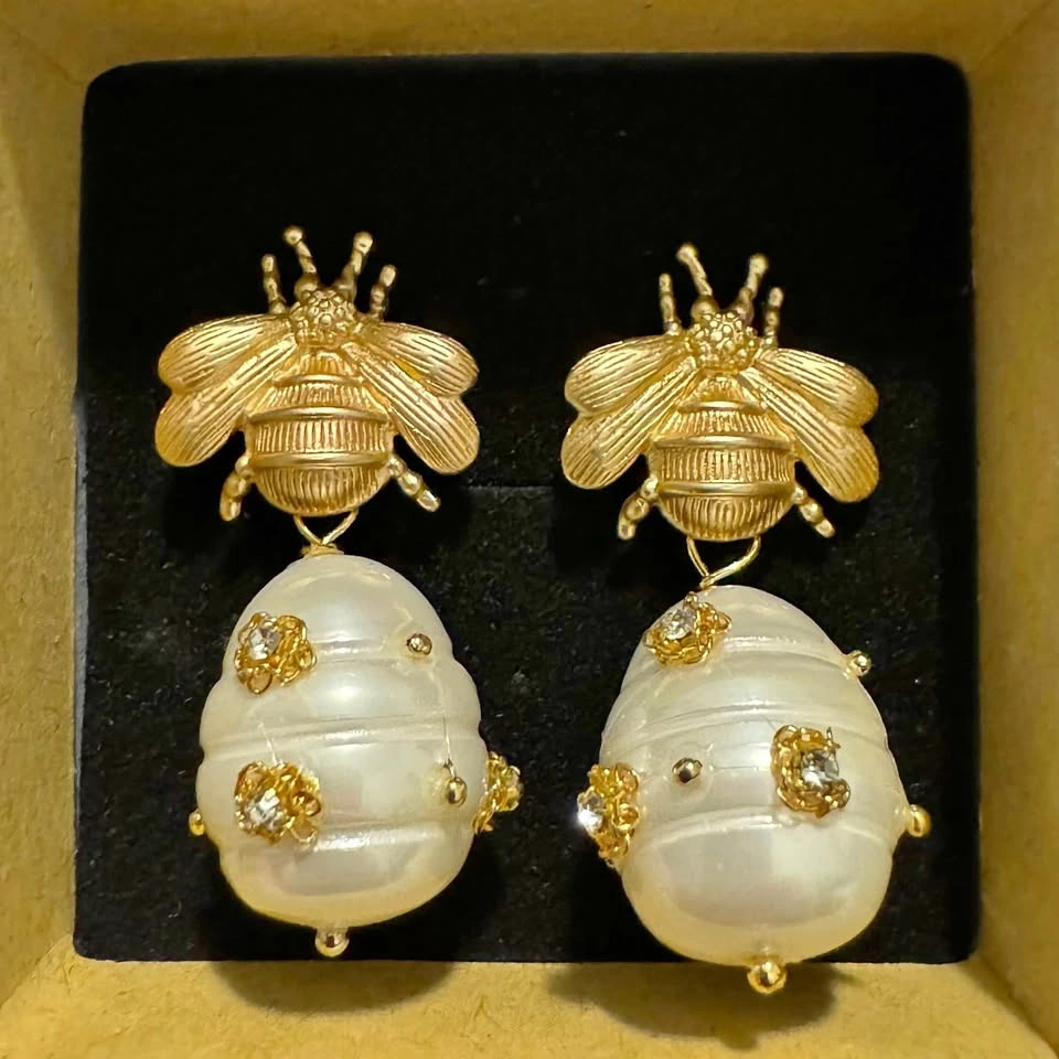 NEW 🧡 Gold Bee Pearl Drop Earrings 🐝 (Matte Gold Brushed Gold)