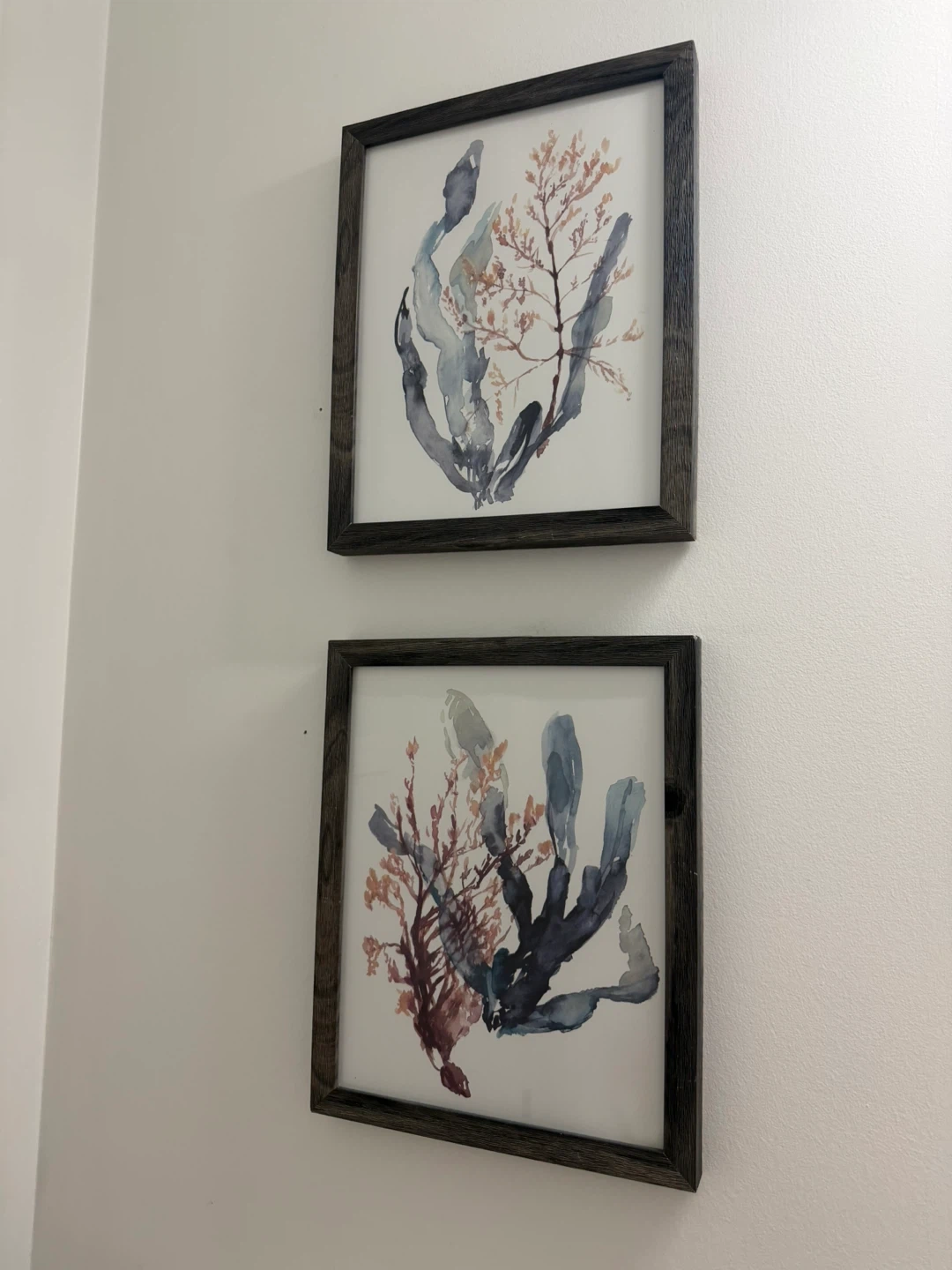 Selling a set of two framed botanical prints. These prints feature a lovely watercolour style and a dark grey frame. They'd be a great addition to any room!