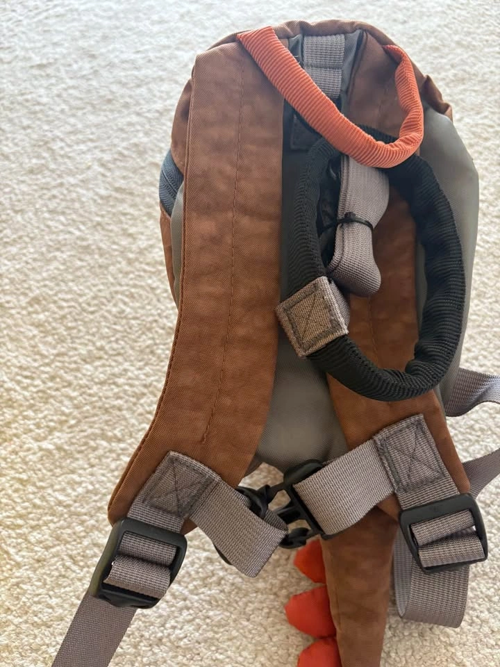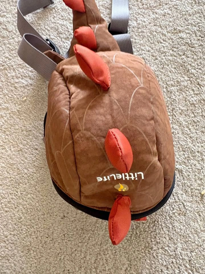 This little pack carries small baby stuff inside its adorable carapace. It also includes a removable safety rein to make sure they don’t crawl, scuttle or stomp away. Top grab handle Internal name and address tag Adjustable padded shoulder straps with sternum strap Suitable for ages 6 months to 3 years
