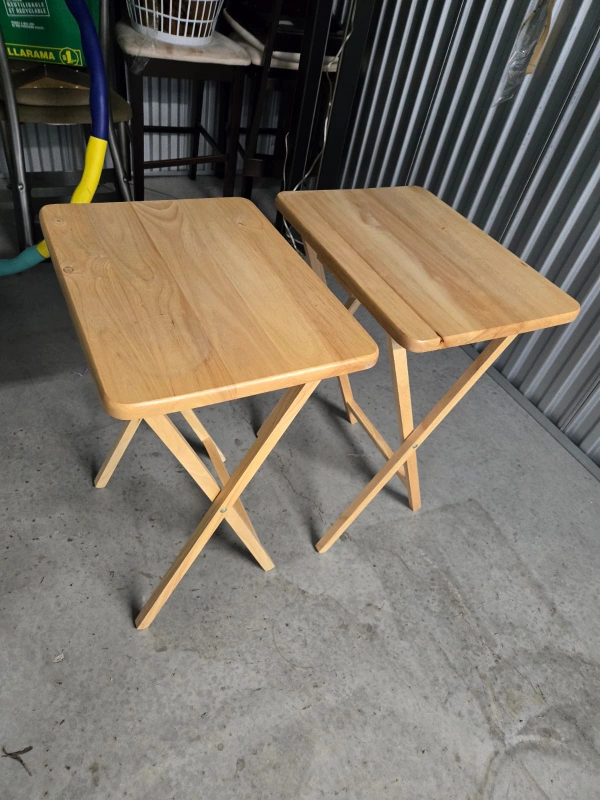 1000+Selling a set of two folding wooden TV tray tables! They're perfect for snacks, meals, or working from the couch. They fold up easily for storage, so they don't take up much space when you're not using them. Great for small spaces or anyone who likes to keep things tidy