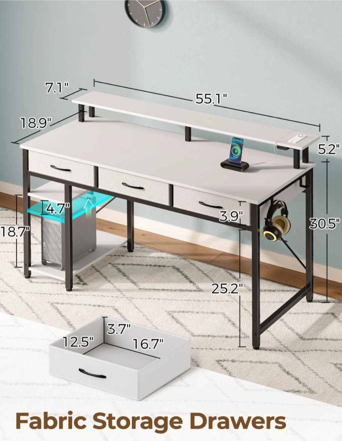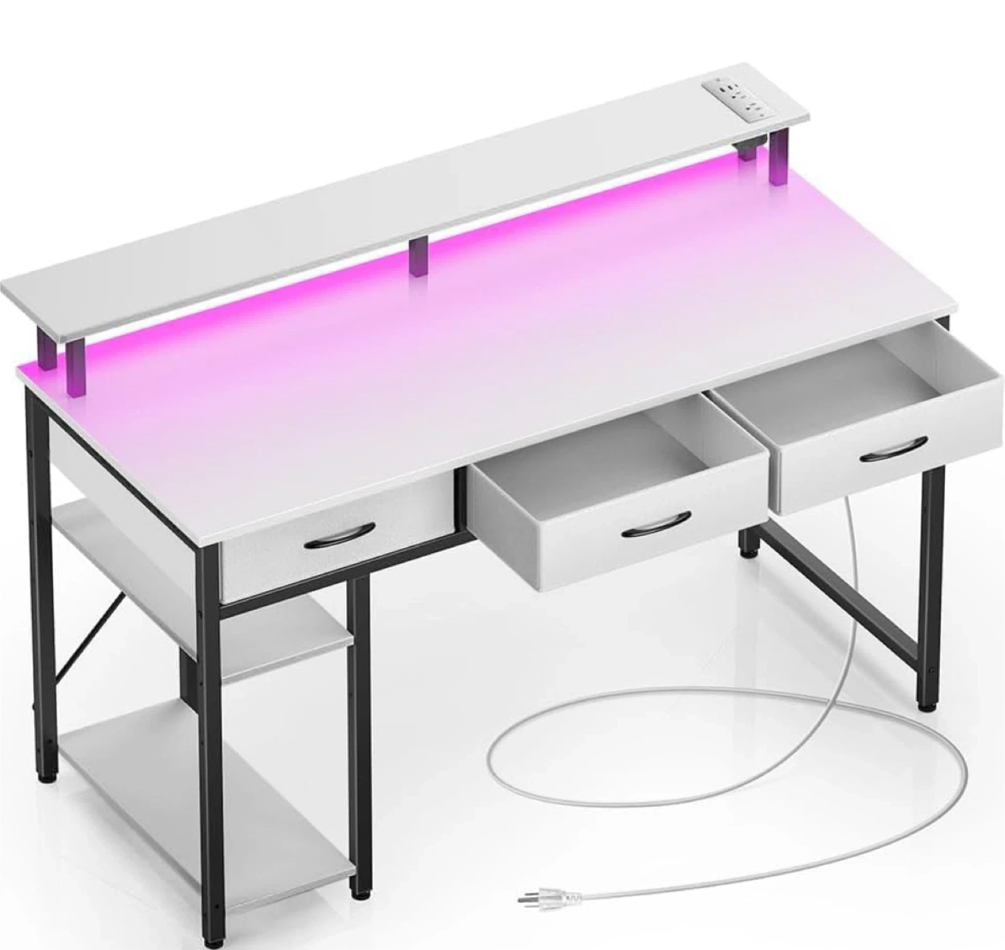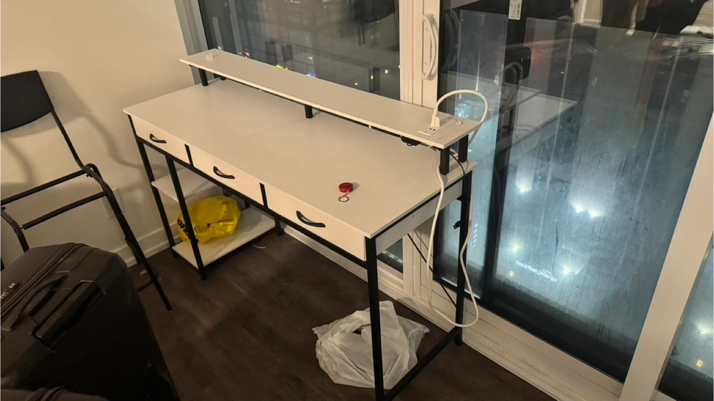 Desk is 8 months old , practically new except for one paint chip near the power outlet.