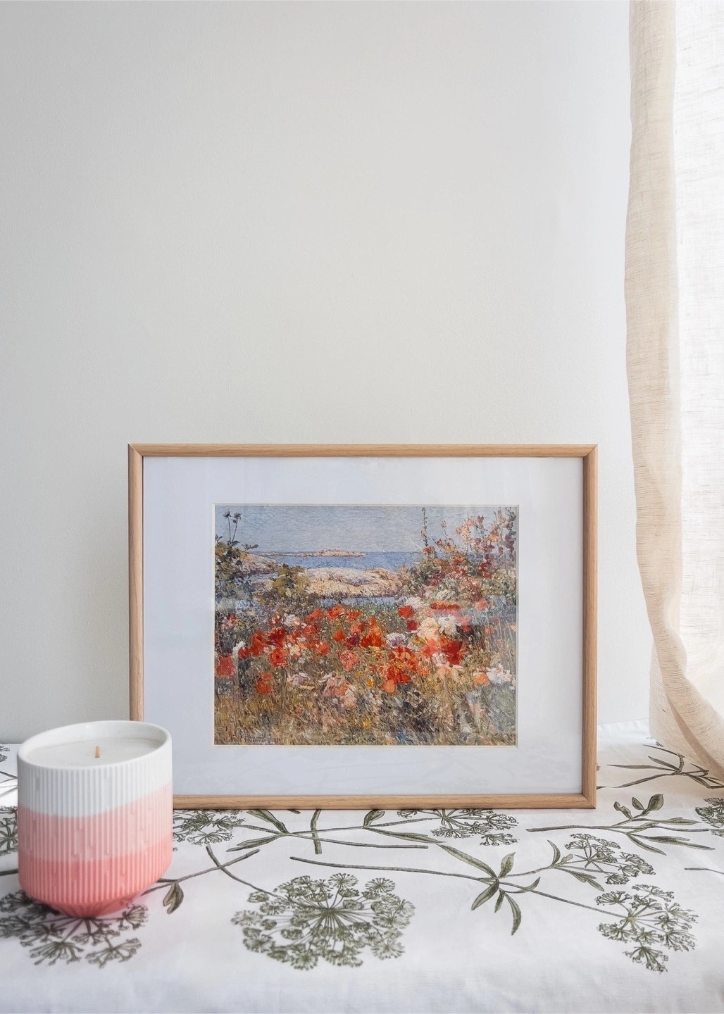 Originally painted on Appledore Island, near New Hampshire, by the Impressionist artist Childe Hassam, 1980.