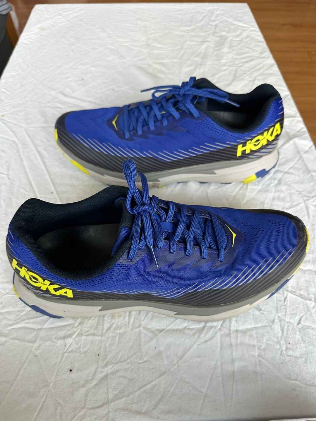 Selling a pair of Hoka Mach 5 running shoes in blue! They're in great shape and ready for your next run. These shoes are known for being lightweight and comfortable, perfect for everyday training or racing. They provide a smooth and responsive ride, making them a favourite among runners. If you're looking for a reliable and stylish pair of running shoes, these Hoka Mach 5s are a great choice