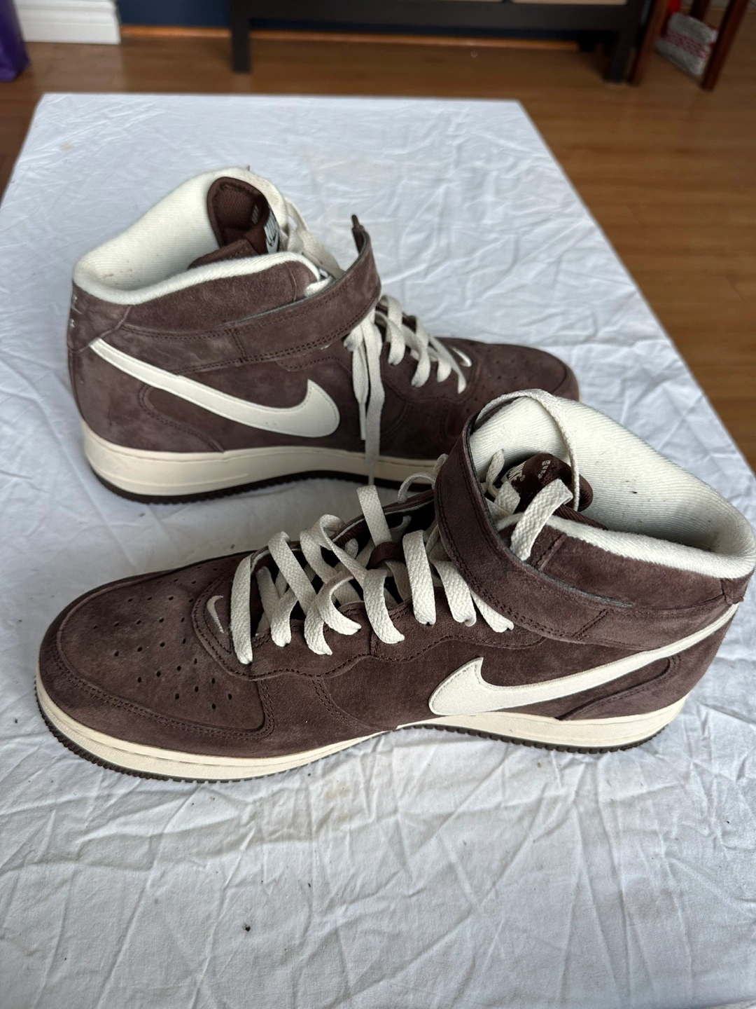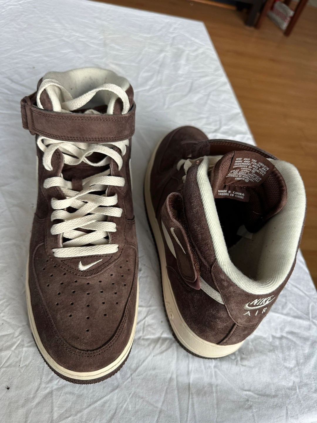 Selling a pair of Nike Air Force 1 Mid '07 shoes in a nice brown colour! They are in great condition and ready for a new home. The size is US 11.
