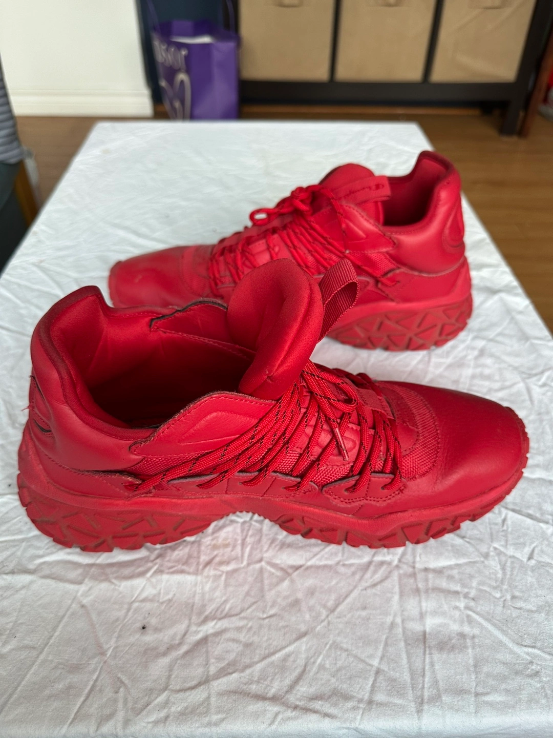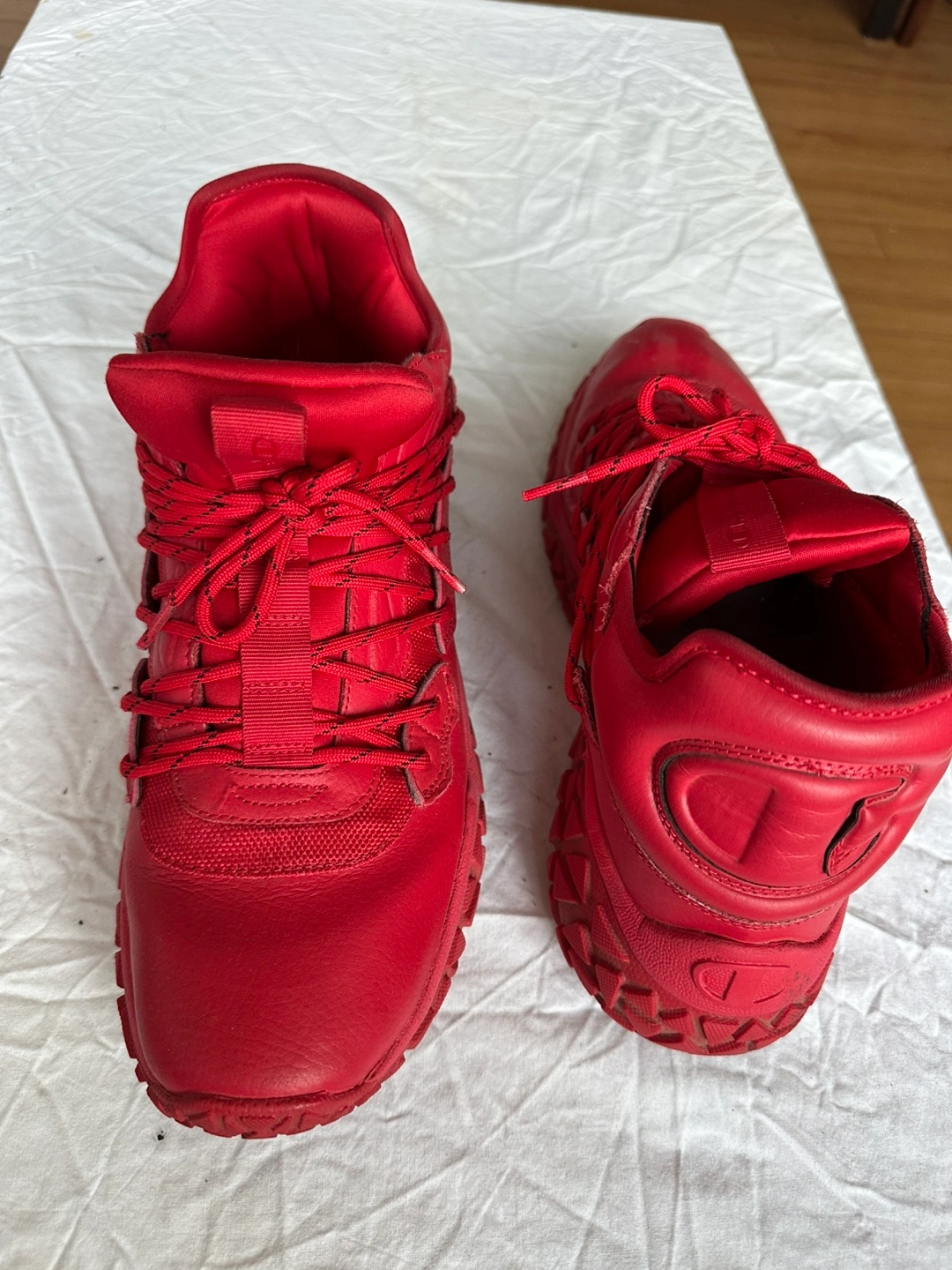Selling a pair of Champion RF Mid sneakers in red. These shoes are in good condition and ready for a new home! They feature a unique design and are perfect for casual wear. Splease check the photos for details!